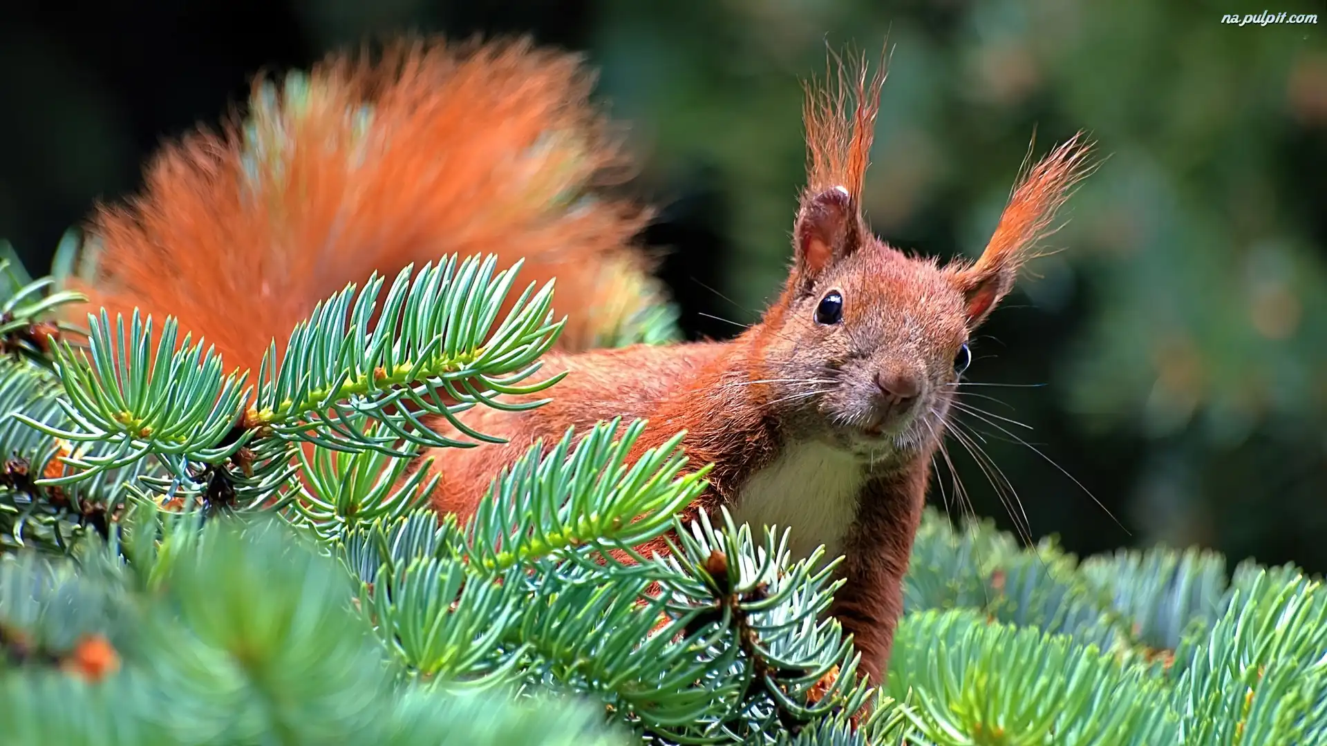 Świerku, Wiewiórka, Gałązka Na Pulpit