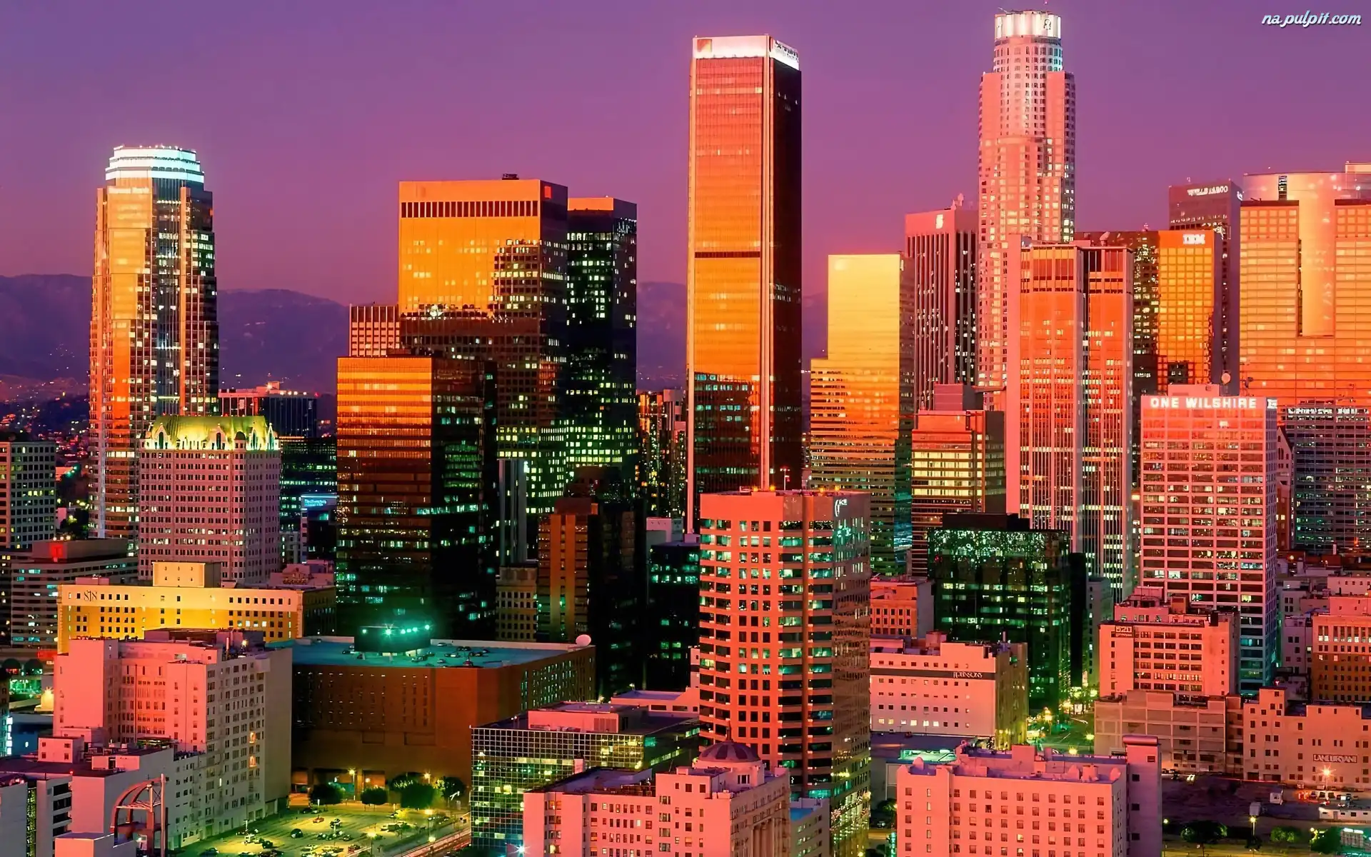 Wieżowce, Zachód, Los Angeles, Słońca Na Pulpit