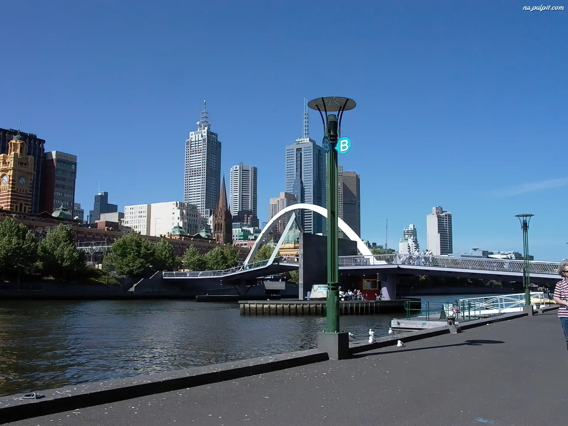 Wieżowce, Woda, Australia, Melbourne, Most Na Pulpit