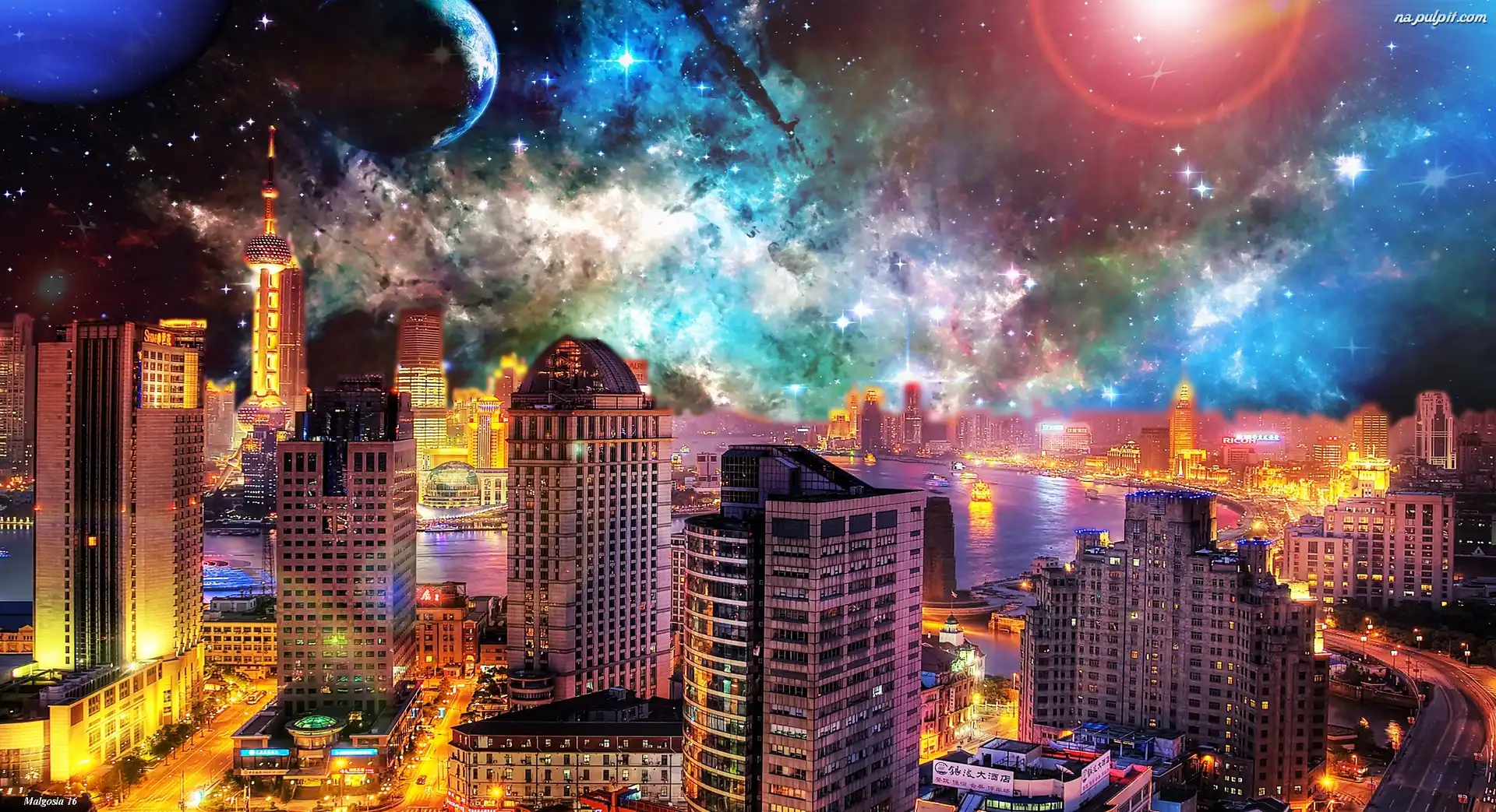 Światła, Miasto, Nocą Poświata, Galaktyka, Kosmos Afryka, Miasto Brandenburska, Berlin, Niemcy, Brama Brdą, Spichrze, Bydgoszcz, Nad Galaktyka Woda, Miasto, Noc Europa, Zdjęcia Miasta Westminster, Anglia, Miasto Kosmos, Galaktyka Gwiazdy, Wir Gwiazdy, Galaktyka, Piramidy, Noc, Kosmos Miasto, Surrealistyczne Gwiazdy, Drzewa, Rzeka, Noc, Droga Mleczna, Mgła