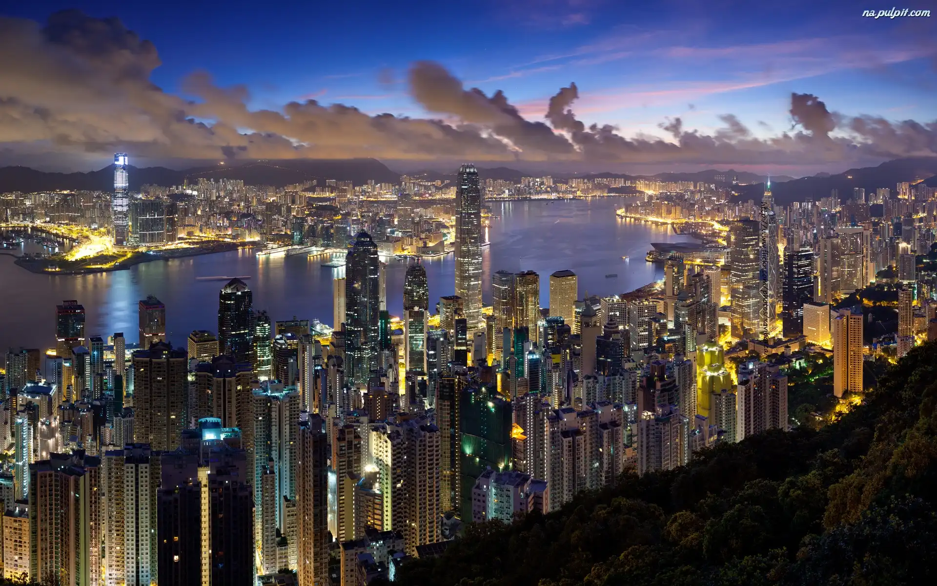 Wieżowce, Noc, Miasto, Światła Na Pulpit