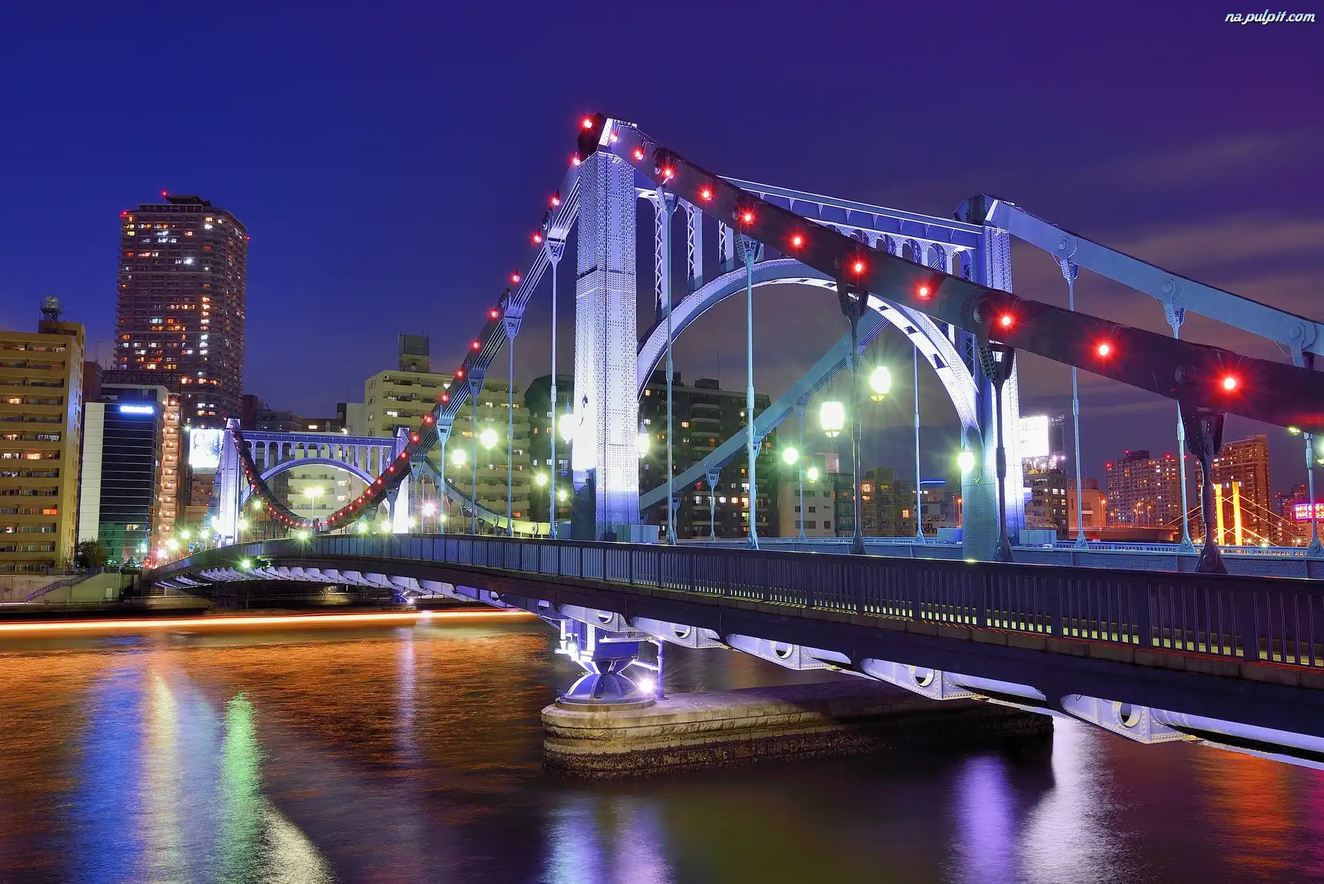 Wieżowce, Most, Japonia, Tokio, Rzeka Na Pulpit