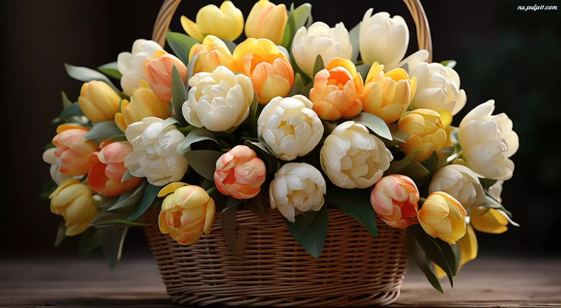 Kolorowe, Tulipany, Koszyk, Wiklinowy Na Pulpit