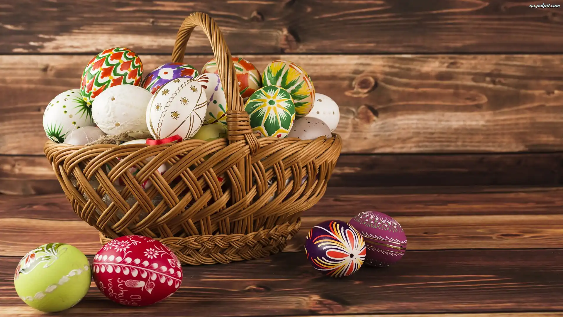 Wiklinowy, Deski, Wielkanoc, Pisanki, Kosz, Dekoracja