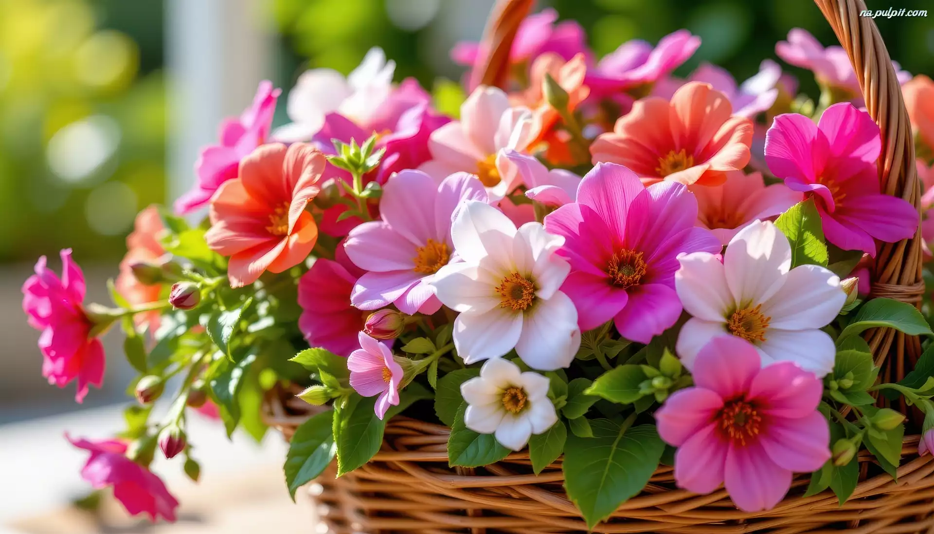 Kwiaty, Wiklinowy, Koszyk, Grafika AI Na Pulpit