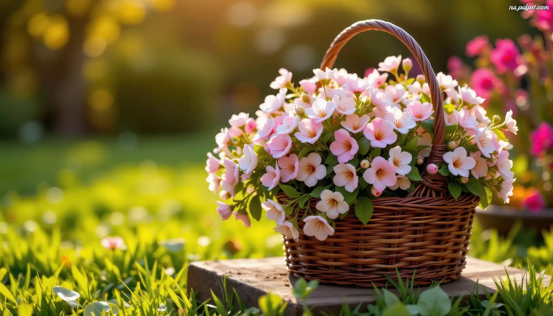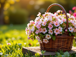 Koszyk, Różowe, Kwiaty, Wiklinowy, Drobne, Trawa Na Pulpit