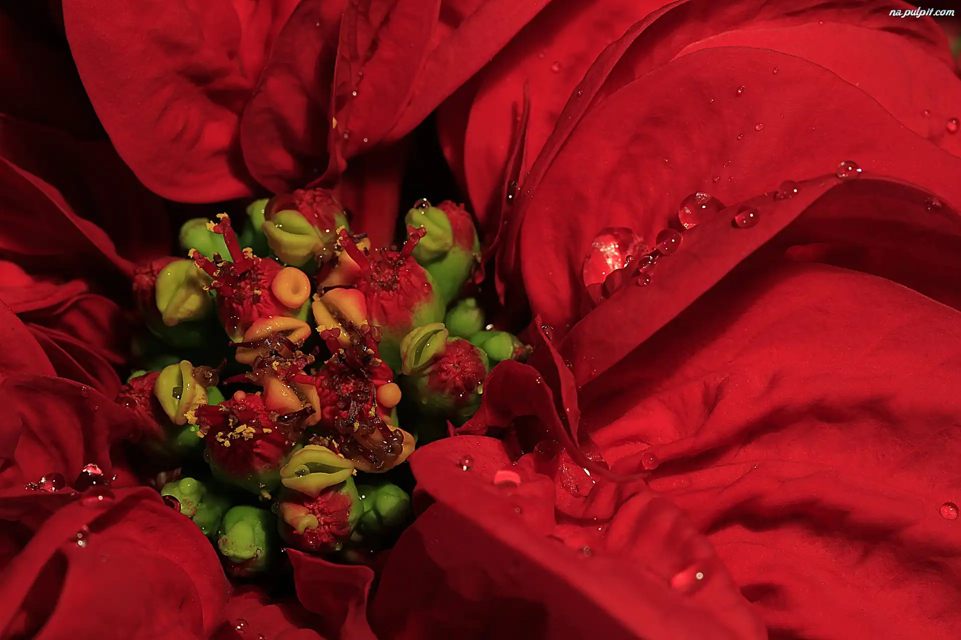 Poinsecja, Biało, Zielona Kropla, Kwitnący, Wilczomlecz Wilczomleczu, Gąsienice, Na Wilczomlecz, Wiosenne, Kwiaty Wilczomlecz, Makro Poinsecja