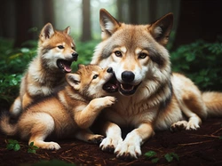 Las, Wilczyca, Młode, AI, Wilki Na Pulpit