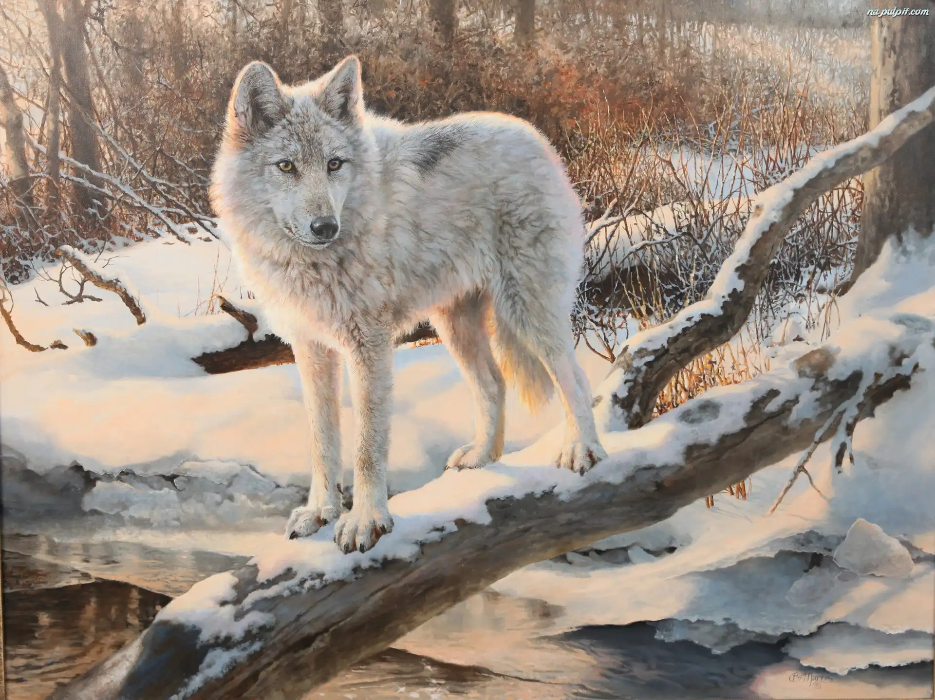 Drzewa, Wilk, Śnieg Na Pulpit
