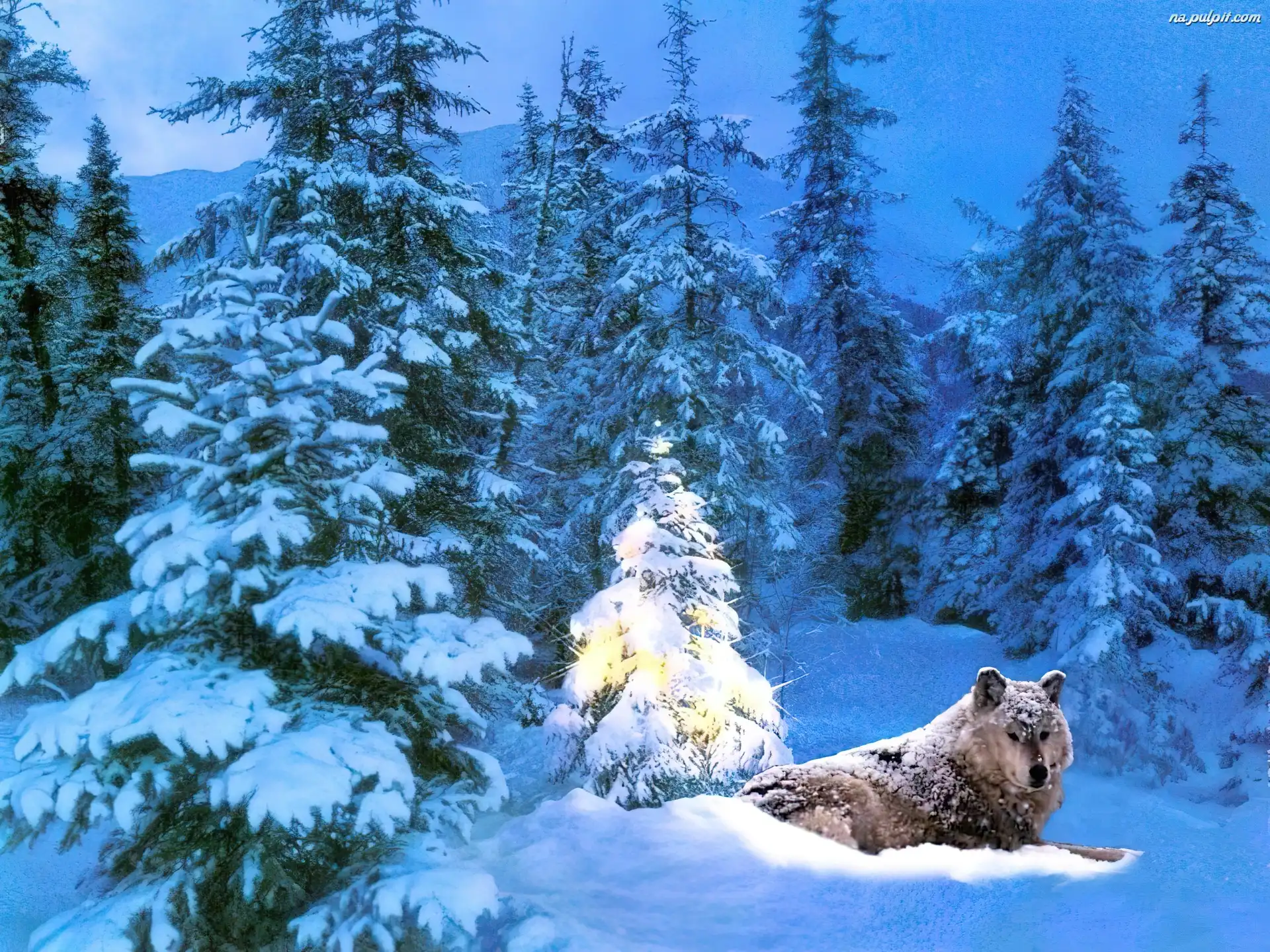 Śnieg, Wilk, Choinka Na Pulpit