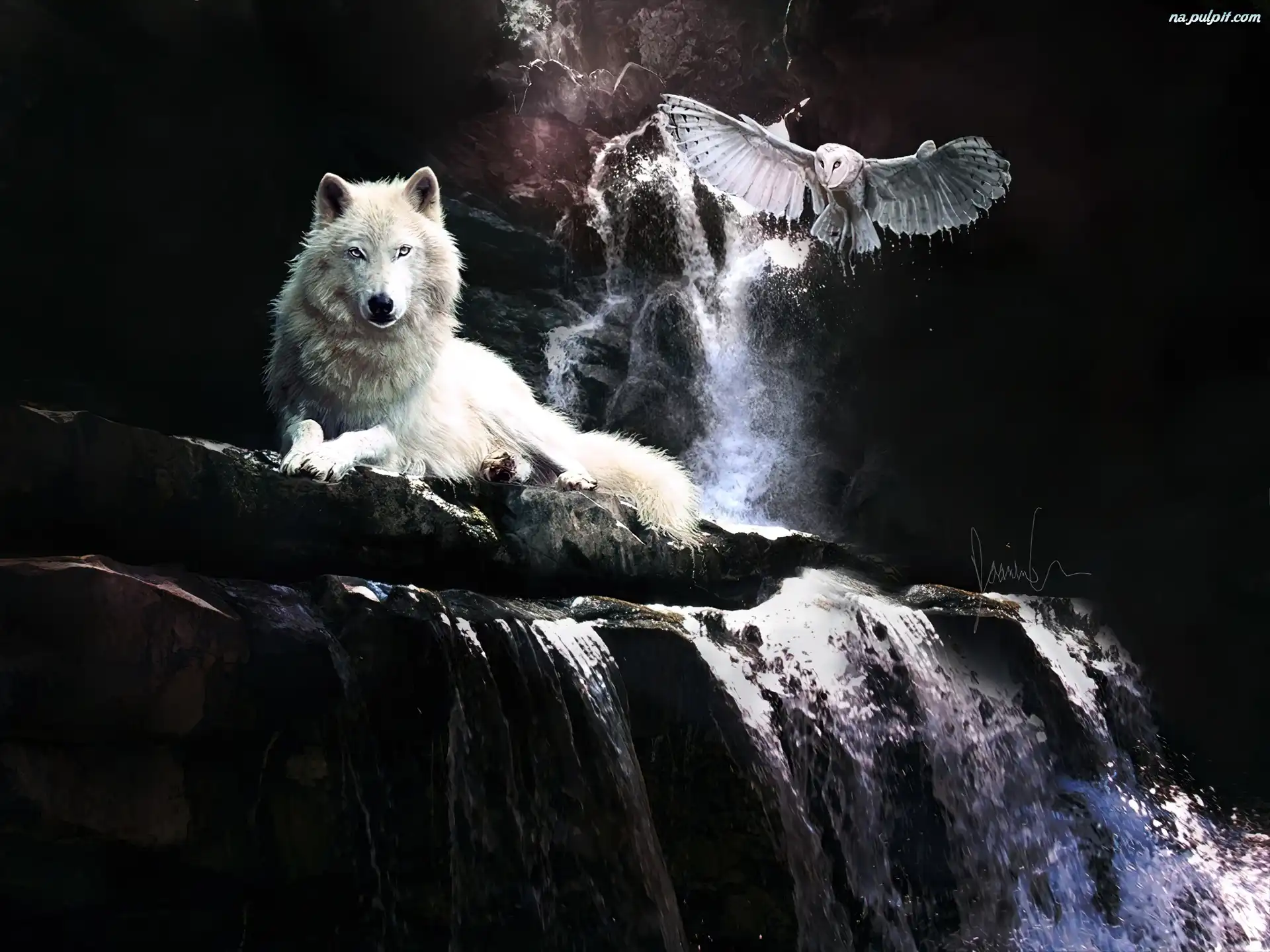Pies, Sowa, Trawa, Cocker spaniel Dwie, Sowy Noc, Las, Wilk, Rzeka Oczy, Szlara, Sowa, Duże Wilk, Fractalius Wilk Czarny Wilk Wilki Wilk, szczeniak Sowa Oczy, Sowa, Żółte Locie, Śnieżna, Sowa, W Kły, Wilki, Pyszczki trzy Sowy