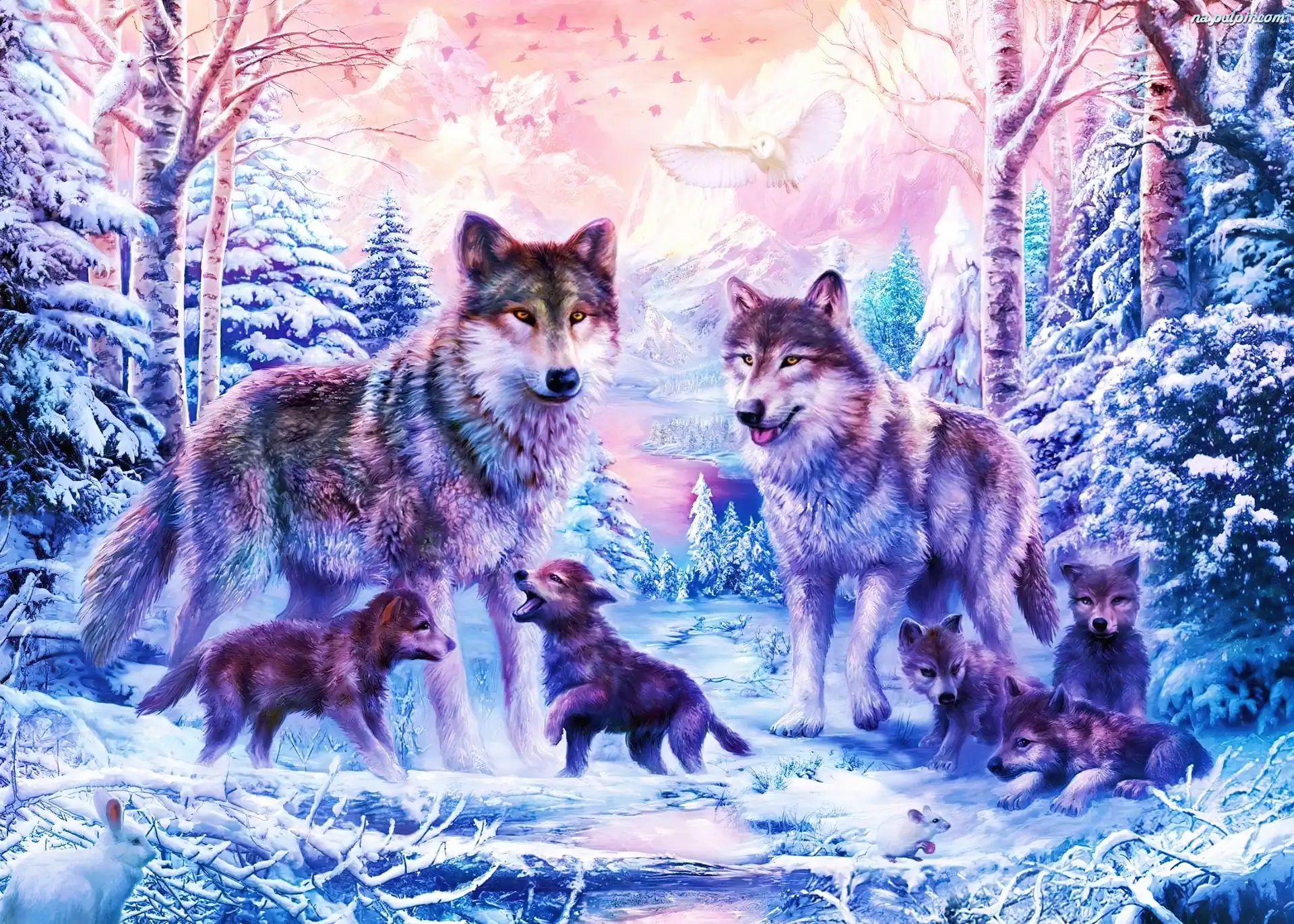 Drzewa, Wilki, Śnieg Na Pulpit