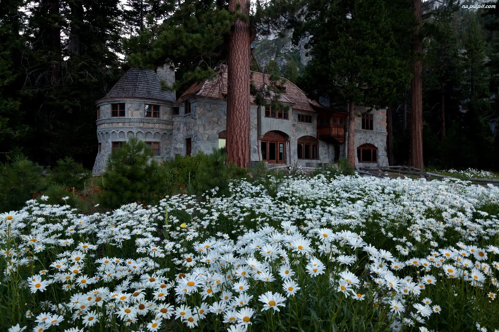 Willa, Łąka, Rumianki, Las, Dom, Góra