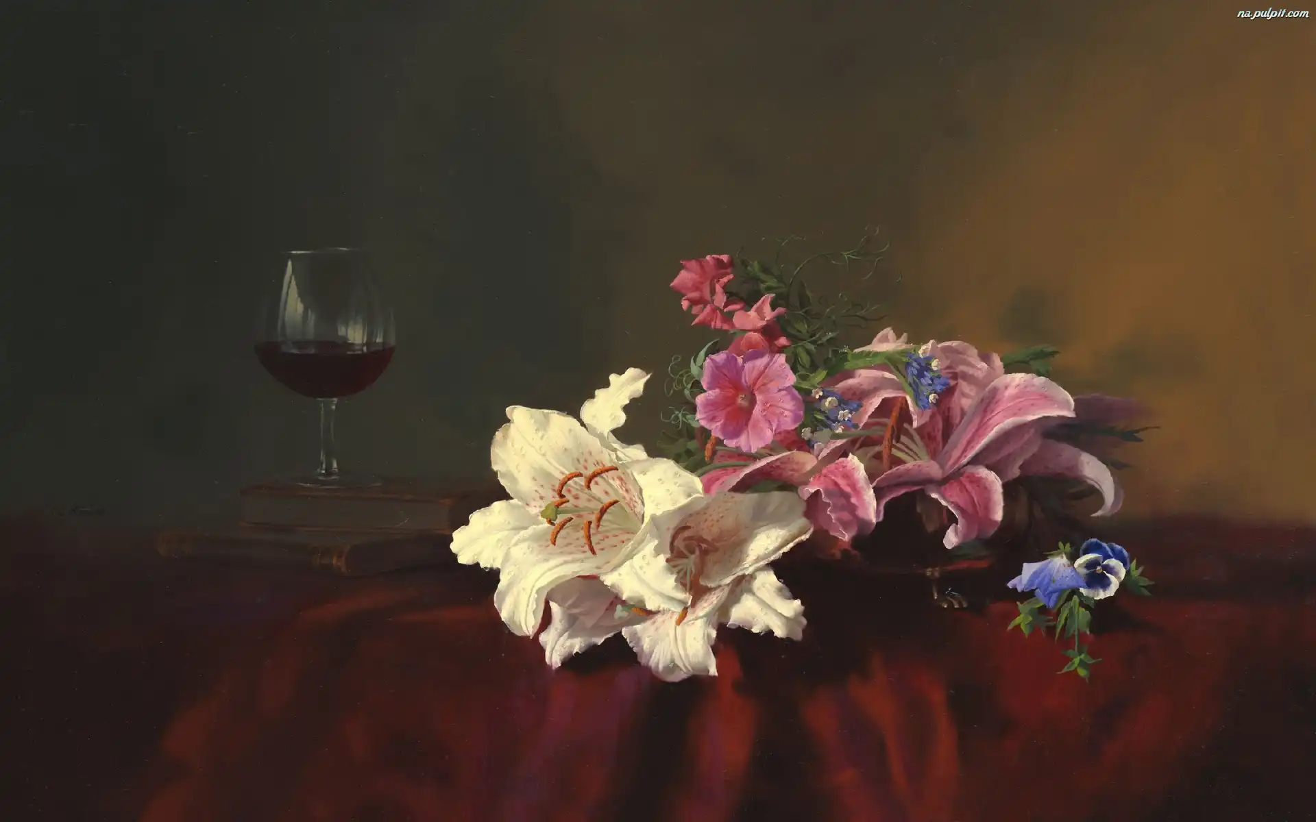 Wina, Kwiatów, Bukiet, Lampka Na Pulpit