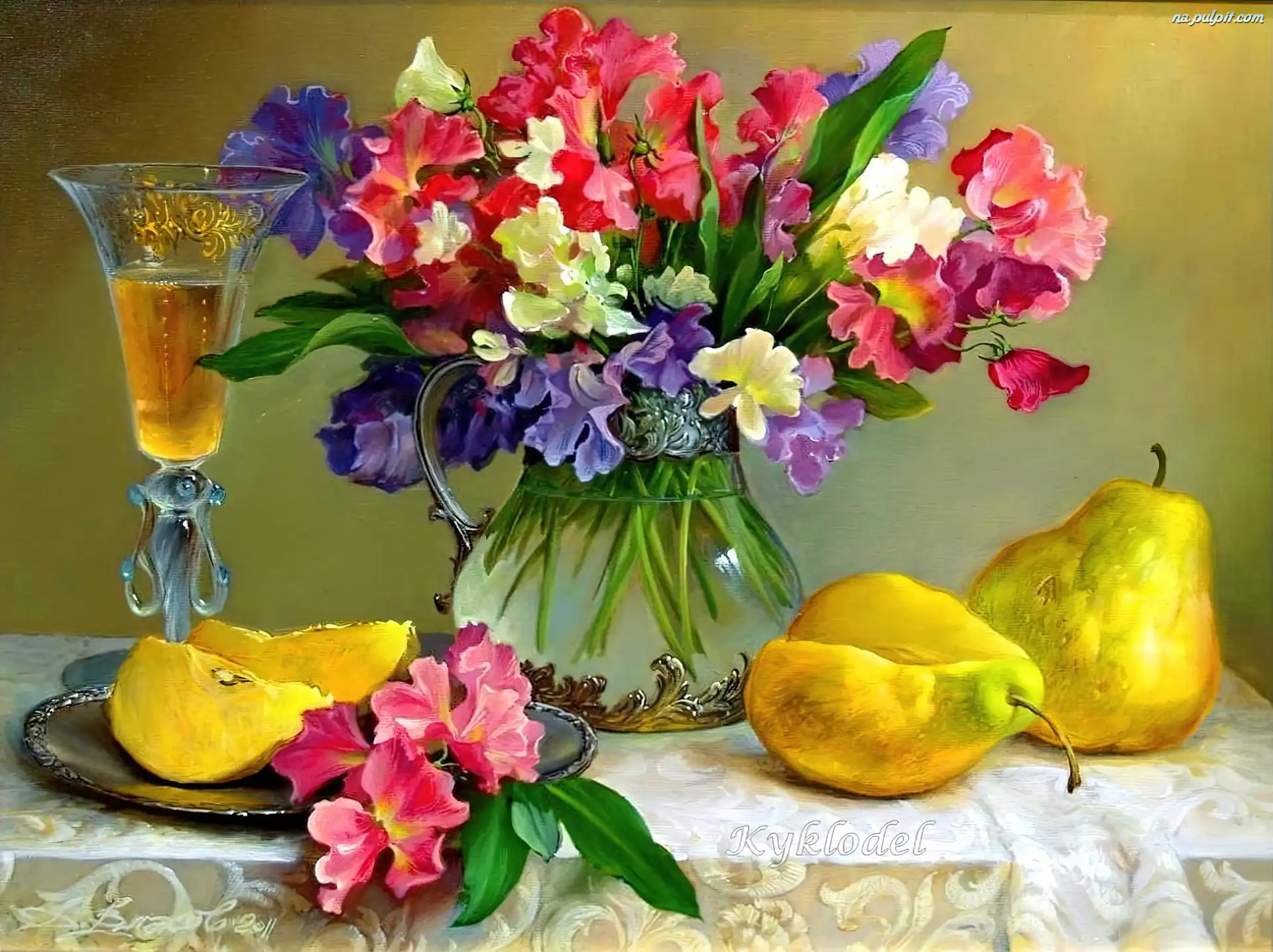 Wina, Gruszki, Kwiaty, Kolorowe, Lampka Na Pulpit