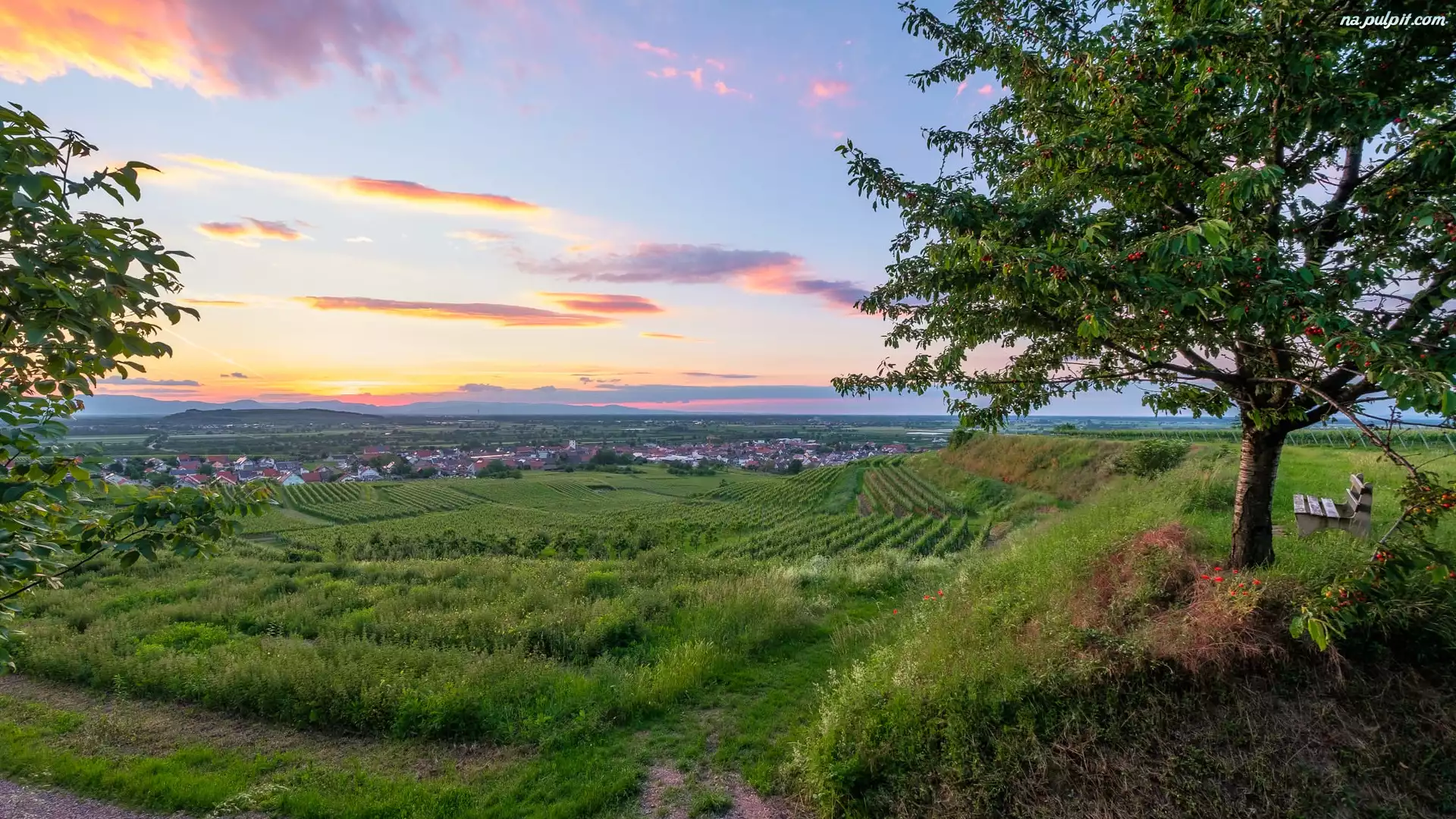 Kaiserstuhl, Winnice, Domy, Vogtsburg, Niemcy, Drzewa, Pola, Ławka Na Pulpit
