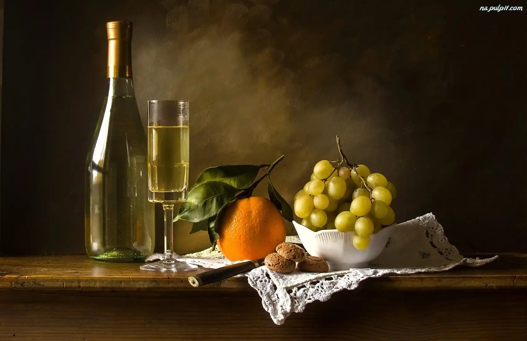 Wino, Pomarańcza, Winogrona, Butelka Na Pulpit