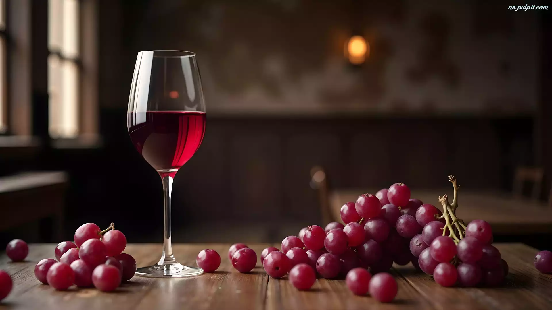 Kieliszek, Wino, Czerwone, Winogrona Na Pulpit