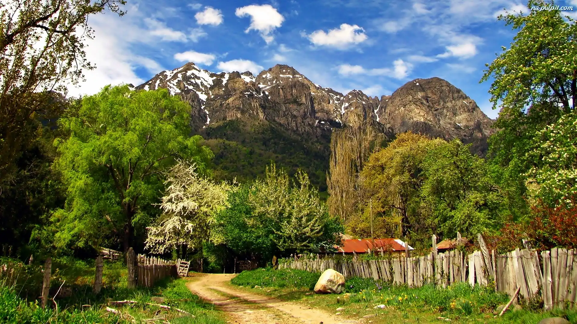 Wioska, Droga, Góry, Drzewa Na Pulpit