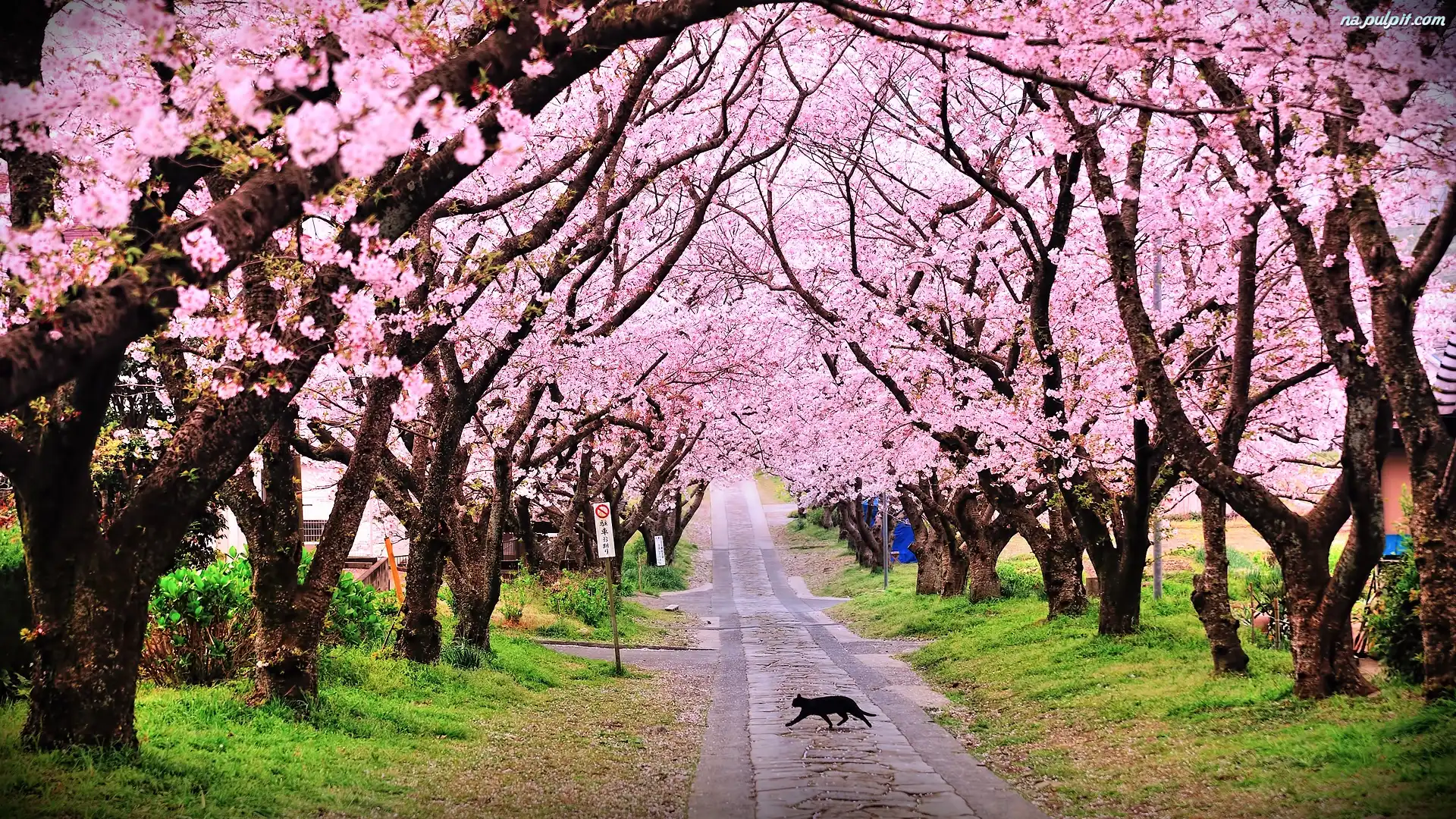 Wiosna, Drzewa, KwitnÄ…ce, Droga, Kot Na Pulpit