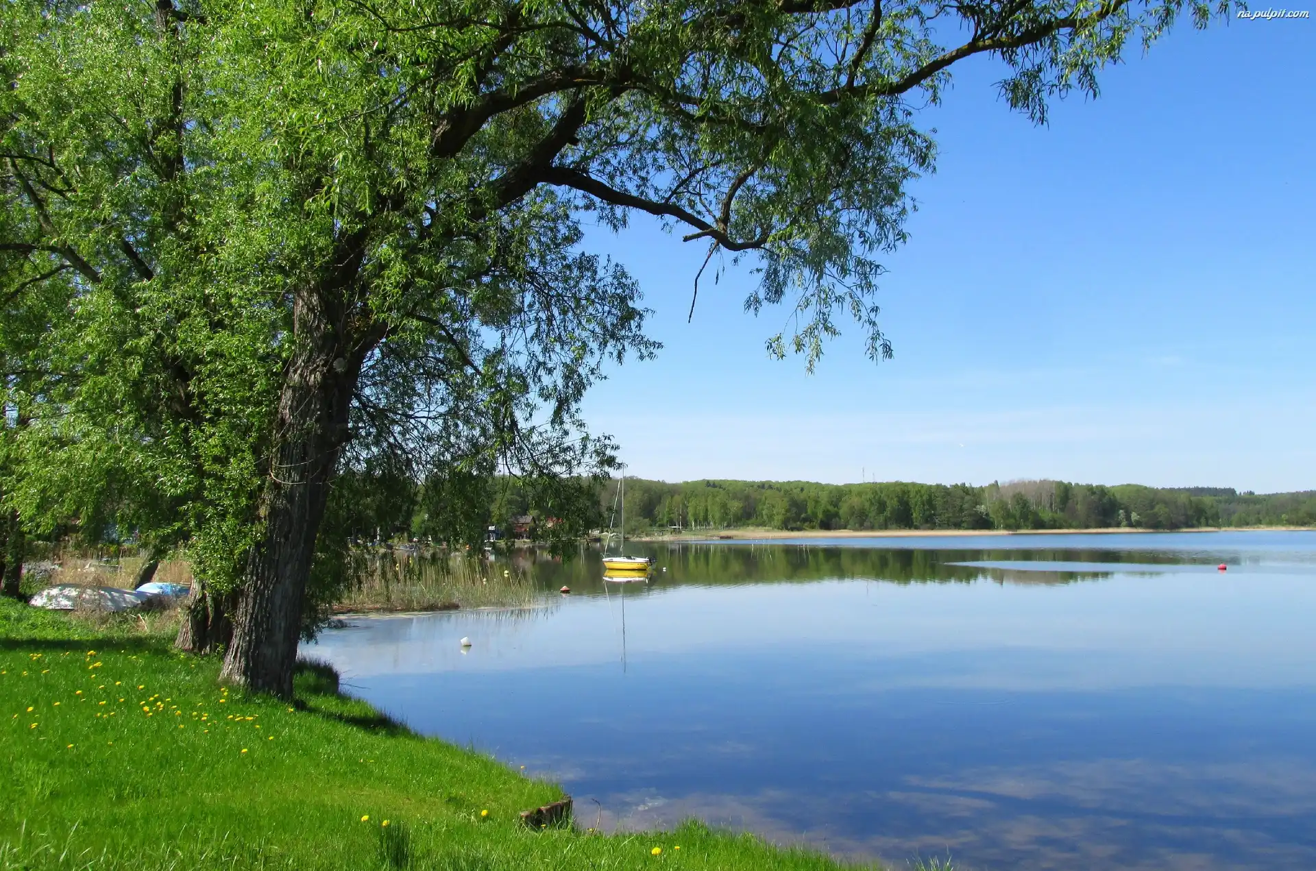 Drzewo, Wiosna, Jezioro Na Pulpit