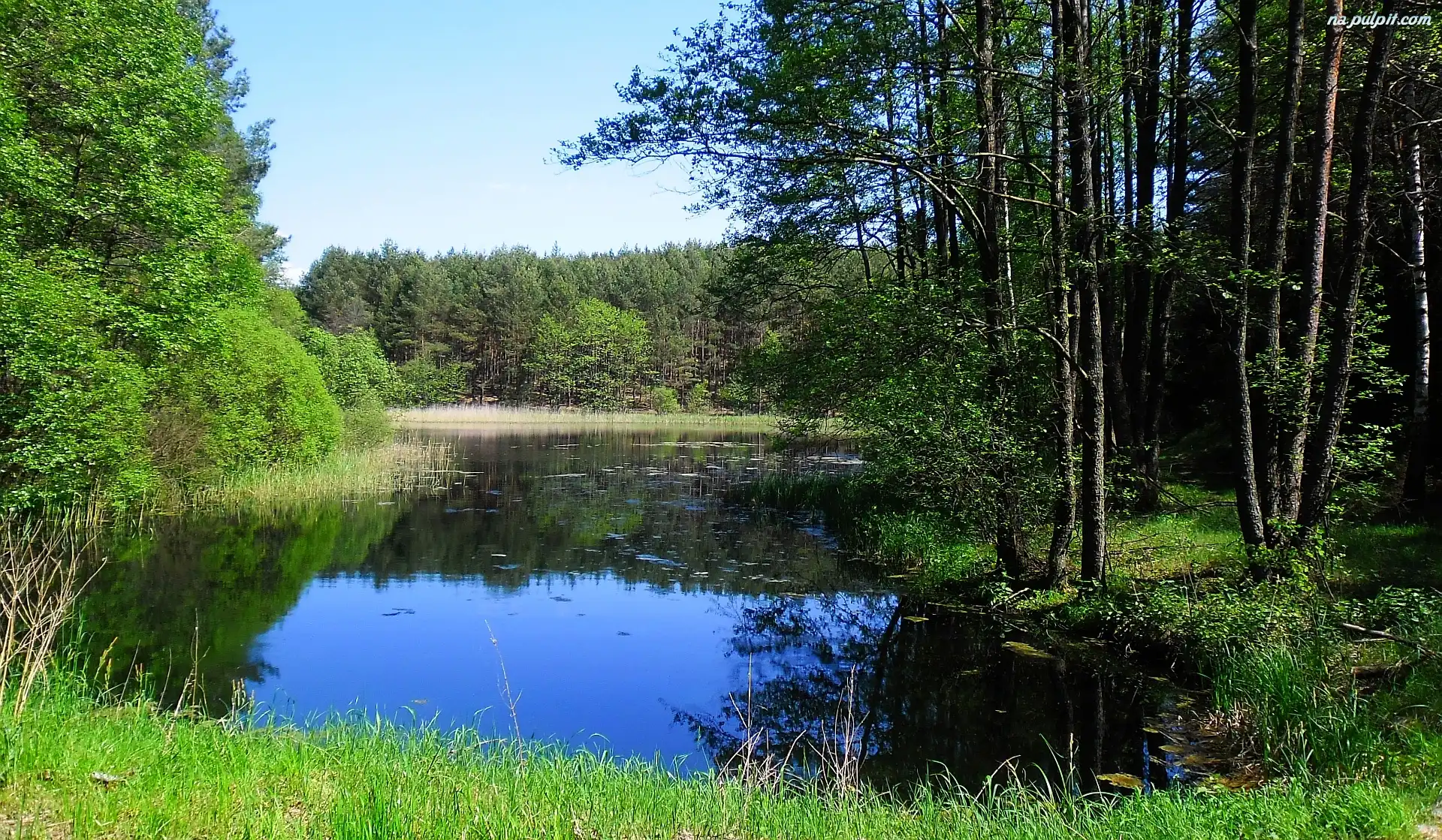 Jezioro, Wiosna, Drzewa Na Pulpit