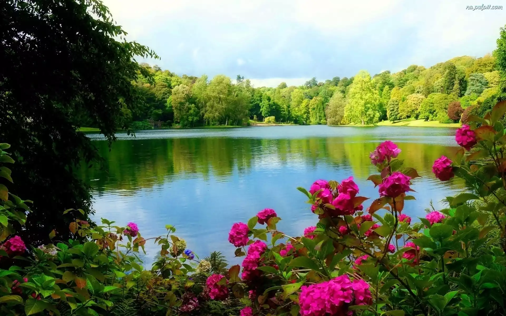 Wiosna, Kwiaty, Drzewa, Jezioro, Park Na Pulpit