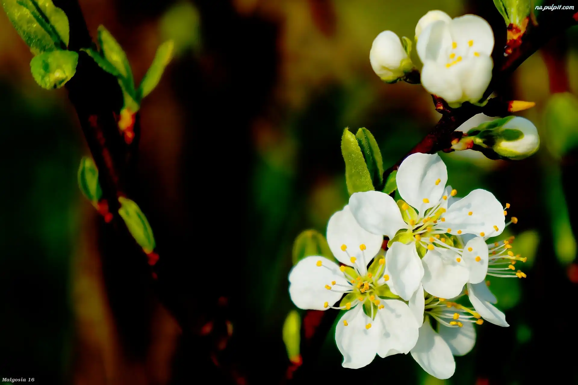 Wiosna, Białe, Kwiaty, Gałązki Na Pulpit