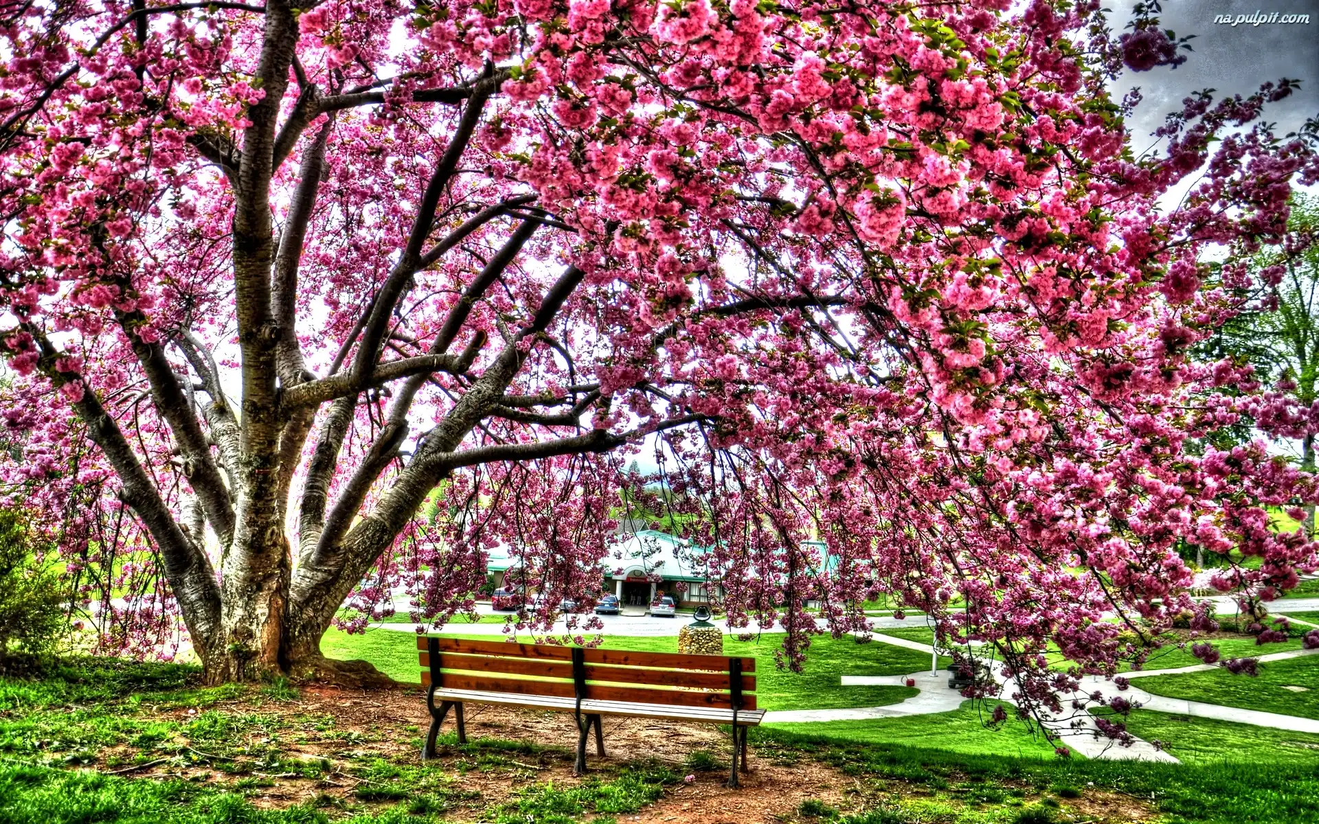 Ławka, Kwitnące, Park, Wiosna, Drzewo Na Pulpit
