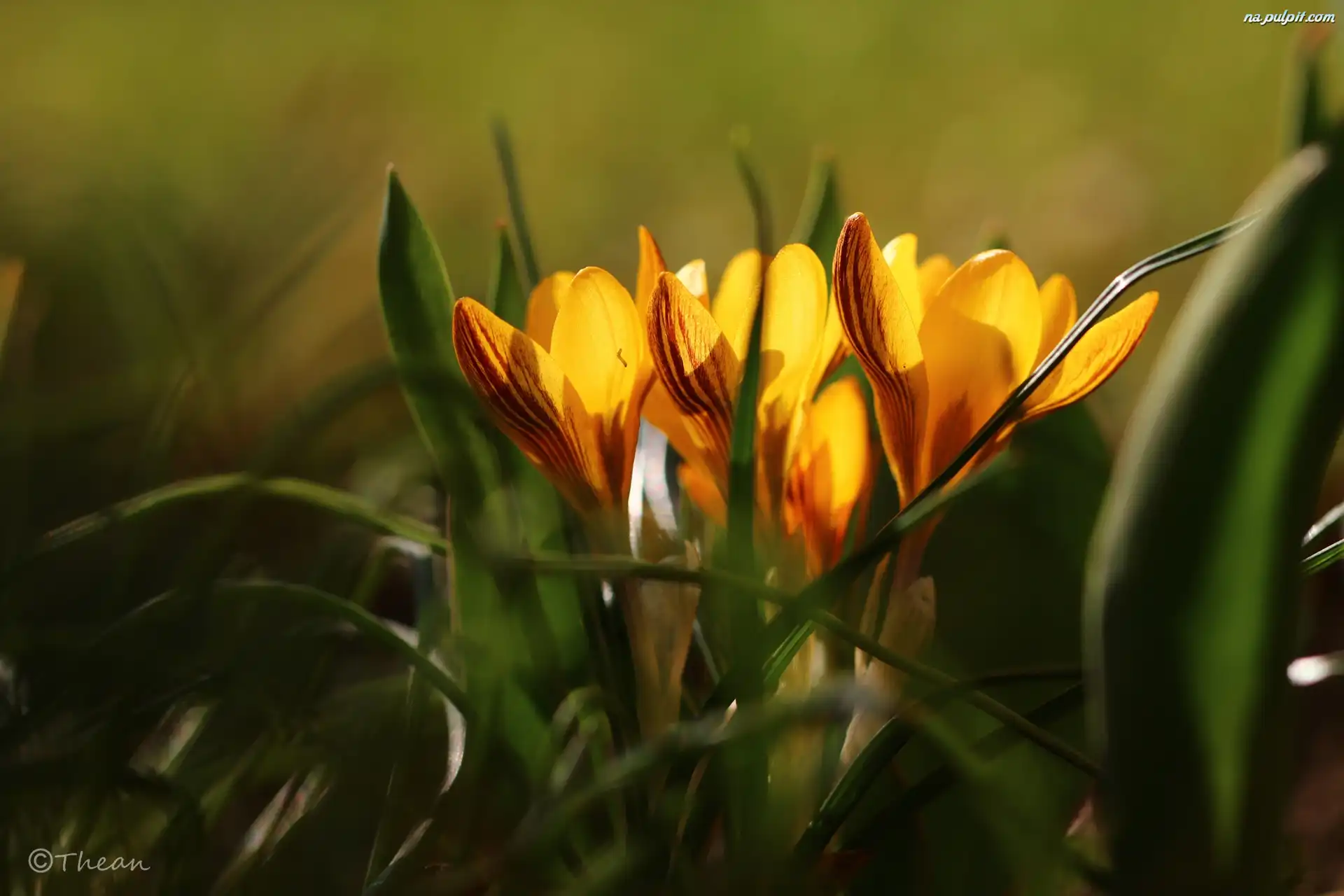 Wiosna, Krokusy, Żółte, Kwiaty Na Pulpit