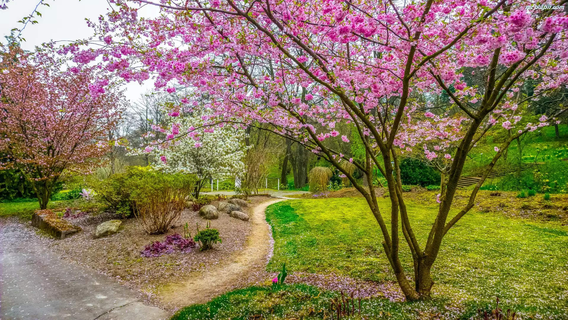 Wiosna, Drzewa, Kwitnące, Park, Ścieżki Na Pulpit