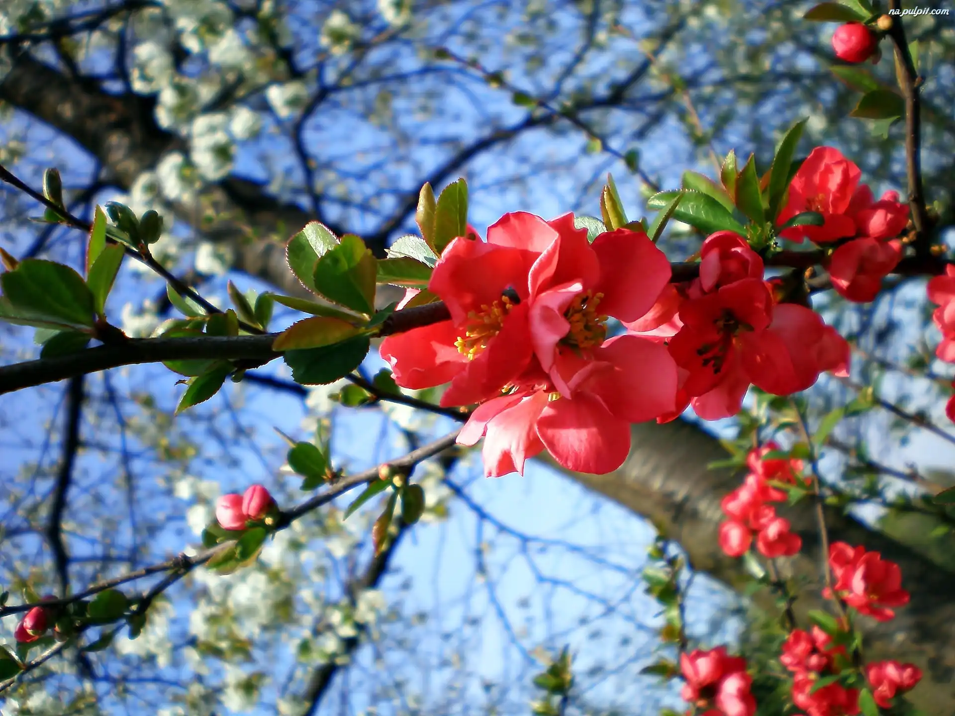 Pigwowiec, Wiosna, Kwitnący Na Pulpit