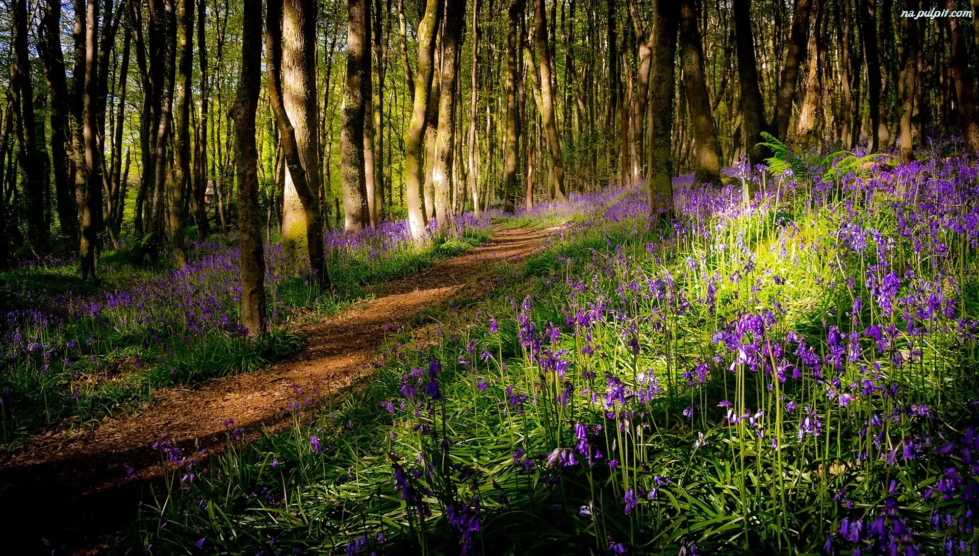 Wiosna, Kwiaty, Ścieżka, Las, Przebijające Światło Na Pulpit