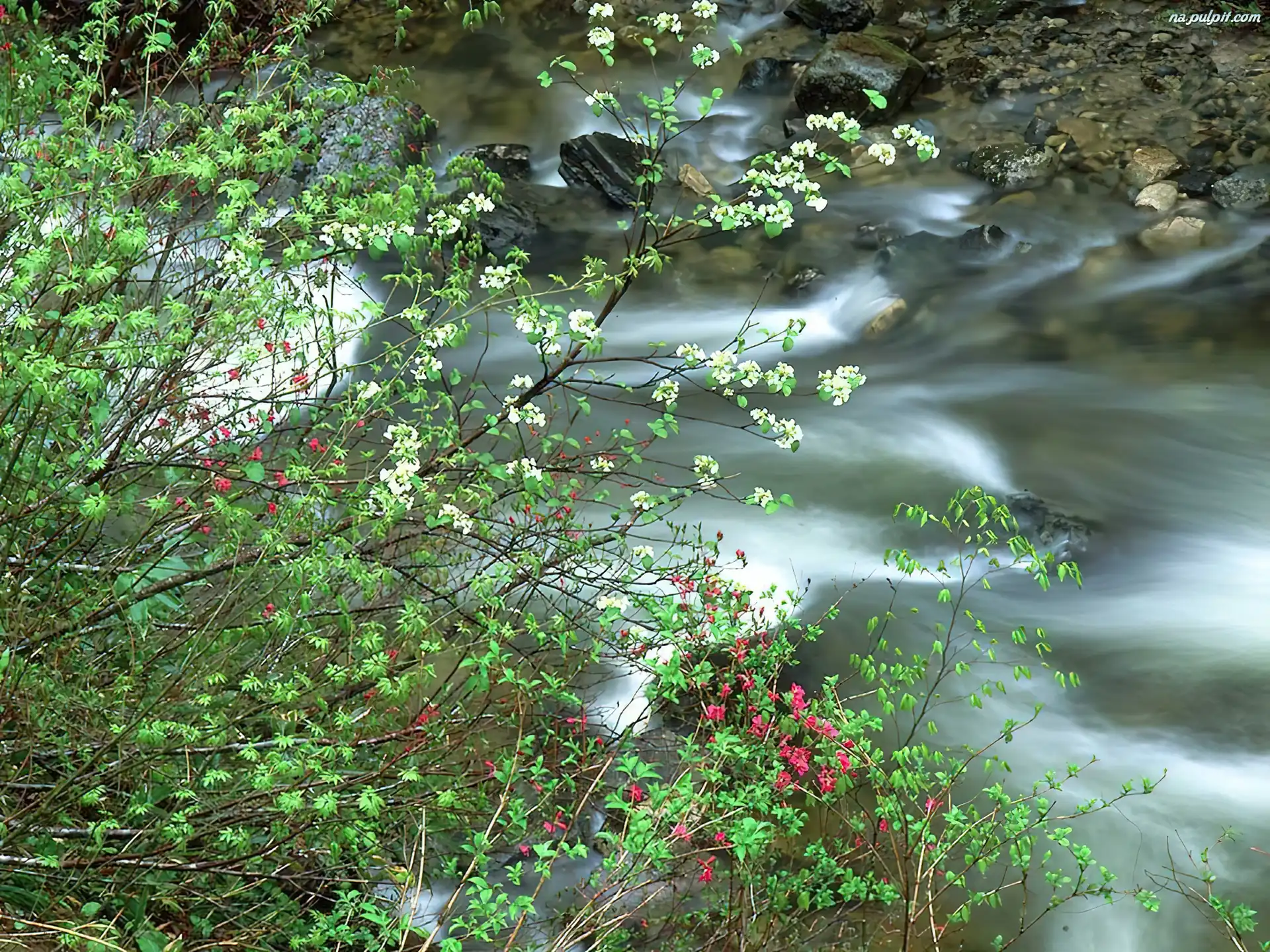 Wiosna, Kamienie, Rzeka, Krzaczki
