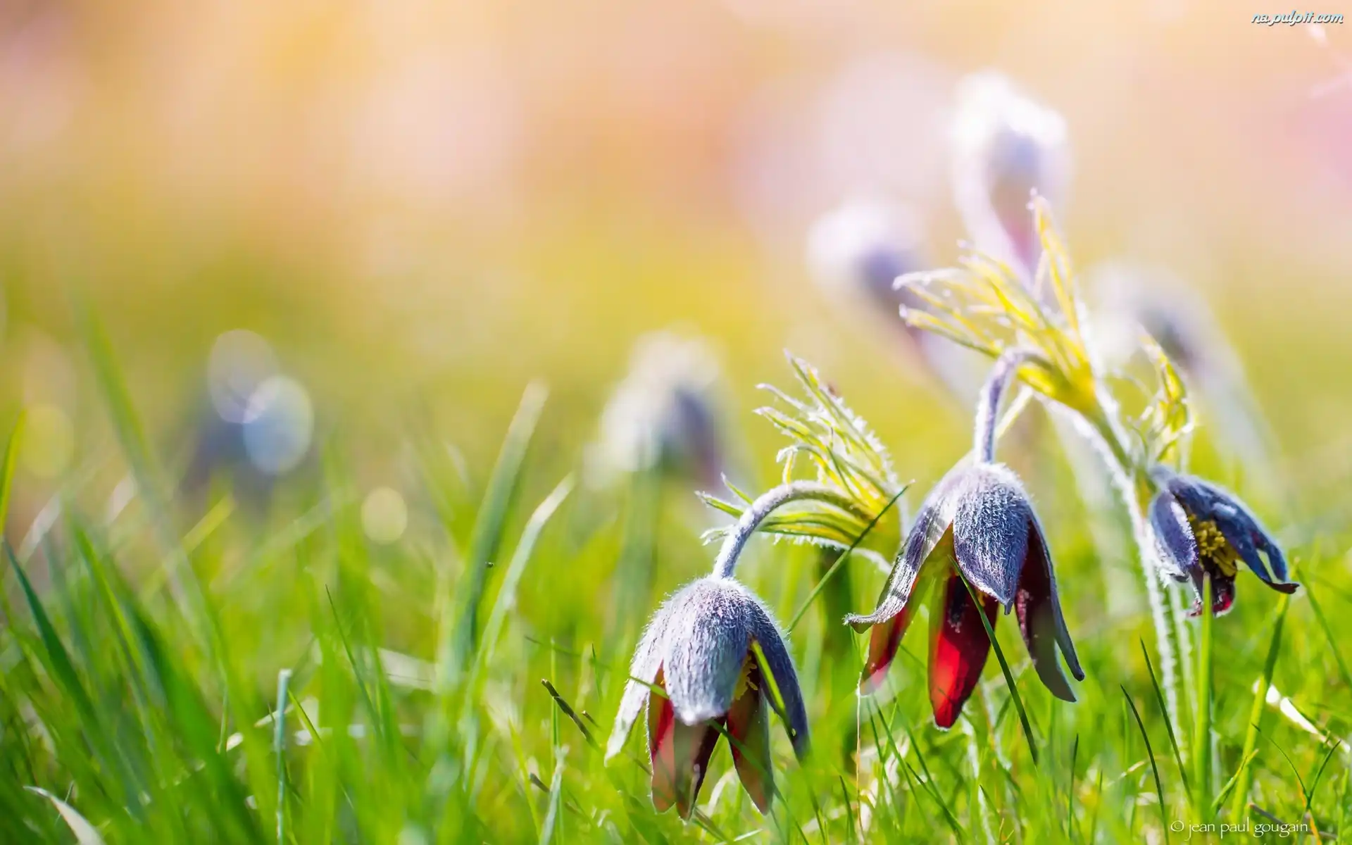 Wiosna, Kwiaty, Sasanki, Trawa Na Pulpit