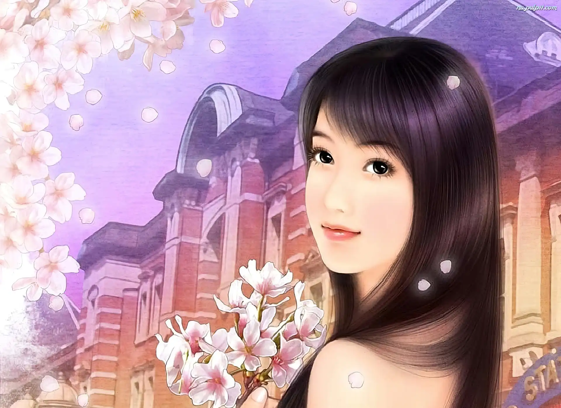 Wiśnia, Dziewczyna, Ładna, Kwitnąca Na Pulpit