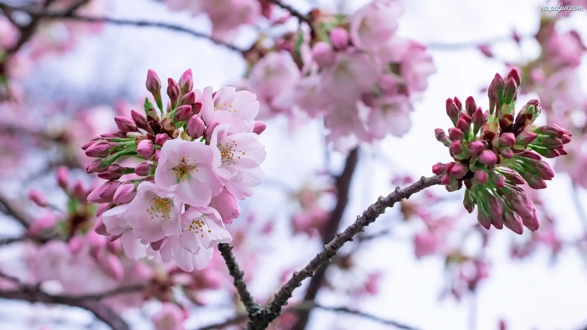 Kwiaty, Drzewo owocowe, Wiśnia, Różowe, Gałązki Na Pulpit