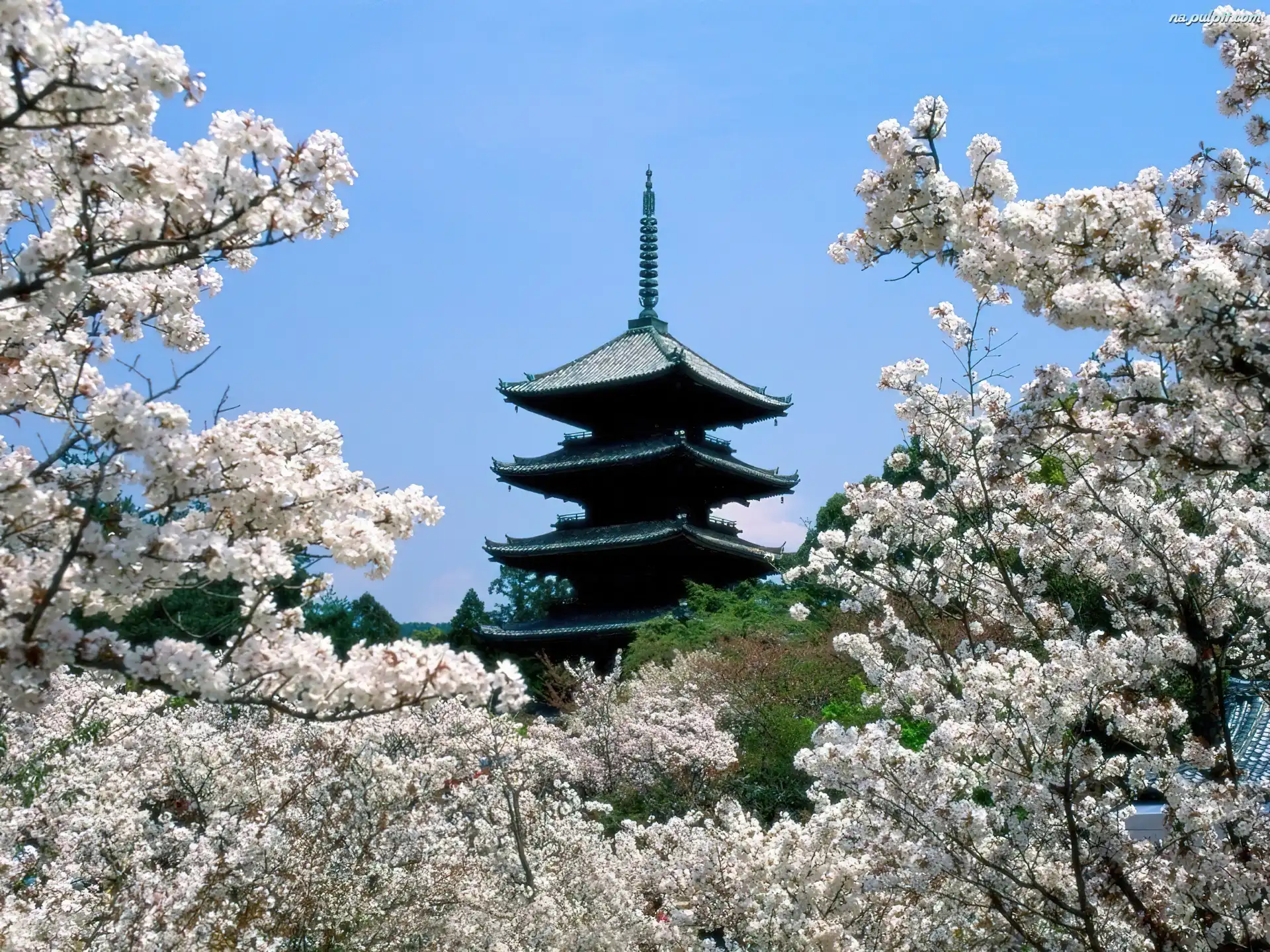 Wiśnie, Budowla, Japonia, Kwitnące Na Pulpit