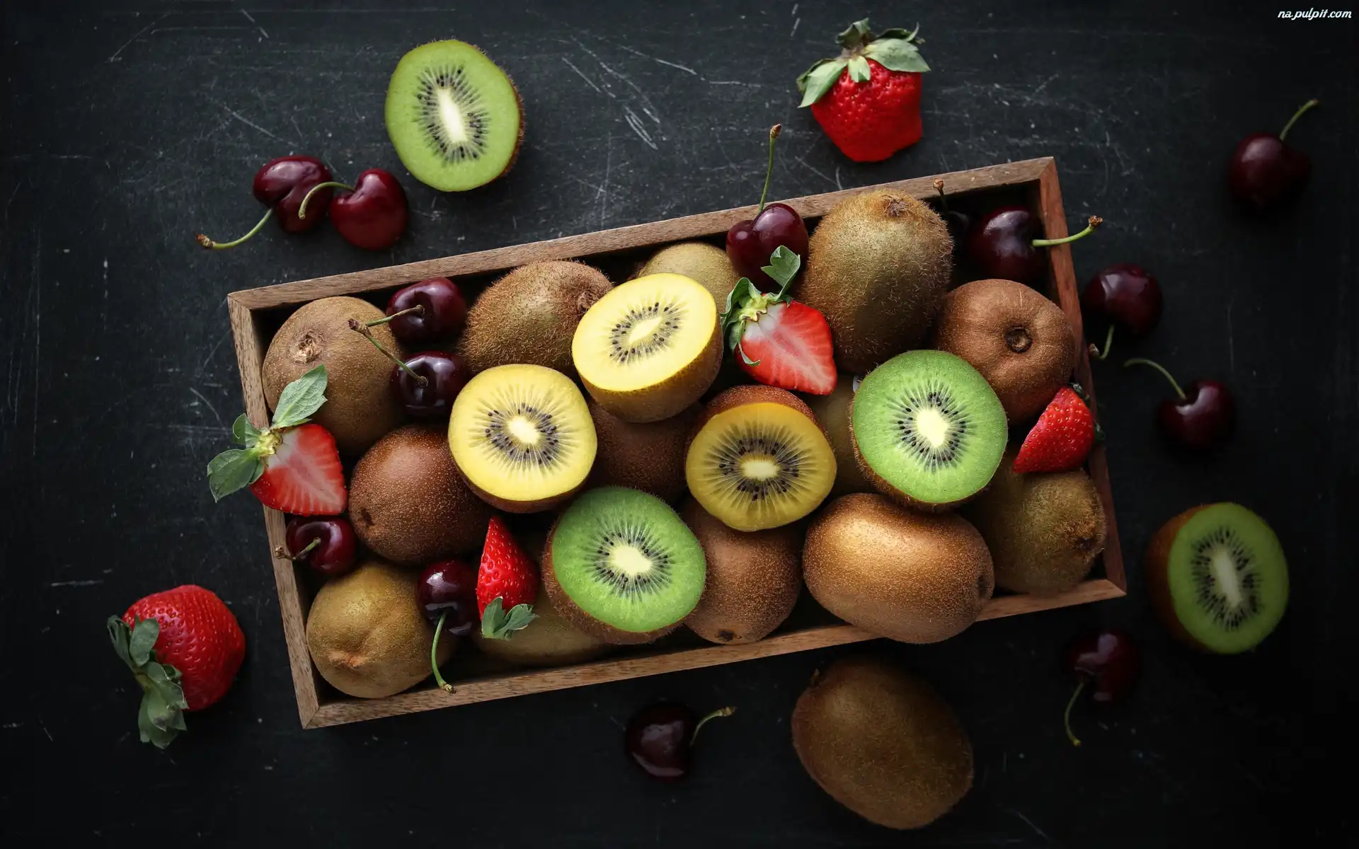 Wiśnie, Kiwi, Skrzynka, Truskawki