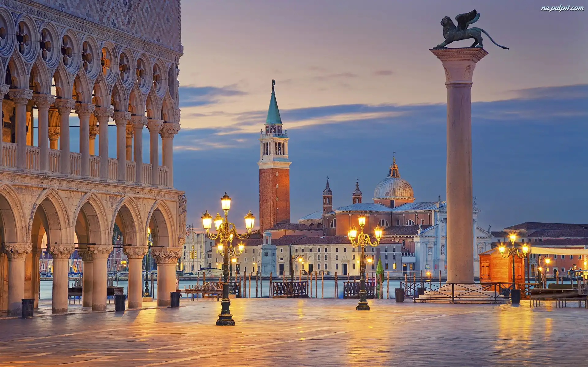 Świt, Plac św. Marka, Wenecja, Włochy, Latarnie Na Pulpit