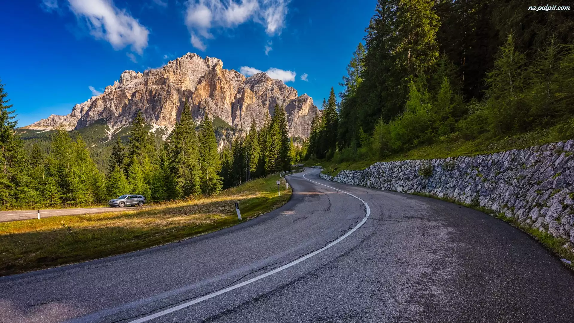 Droga, Włochy, Góry, Drzewa, Dolomity Na Pulpit