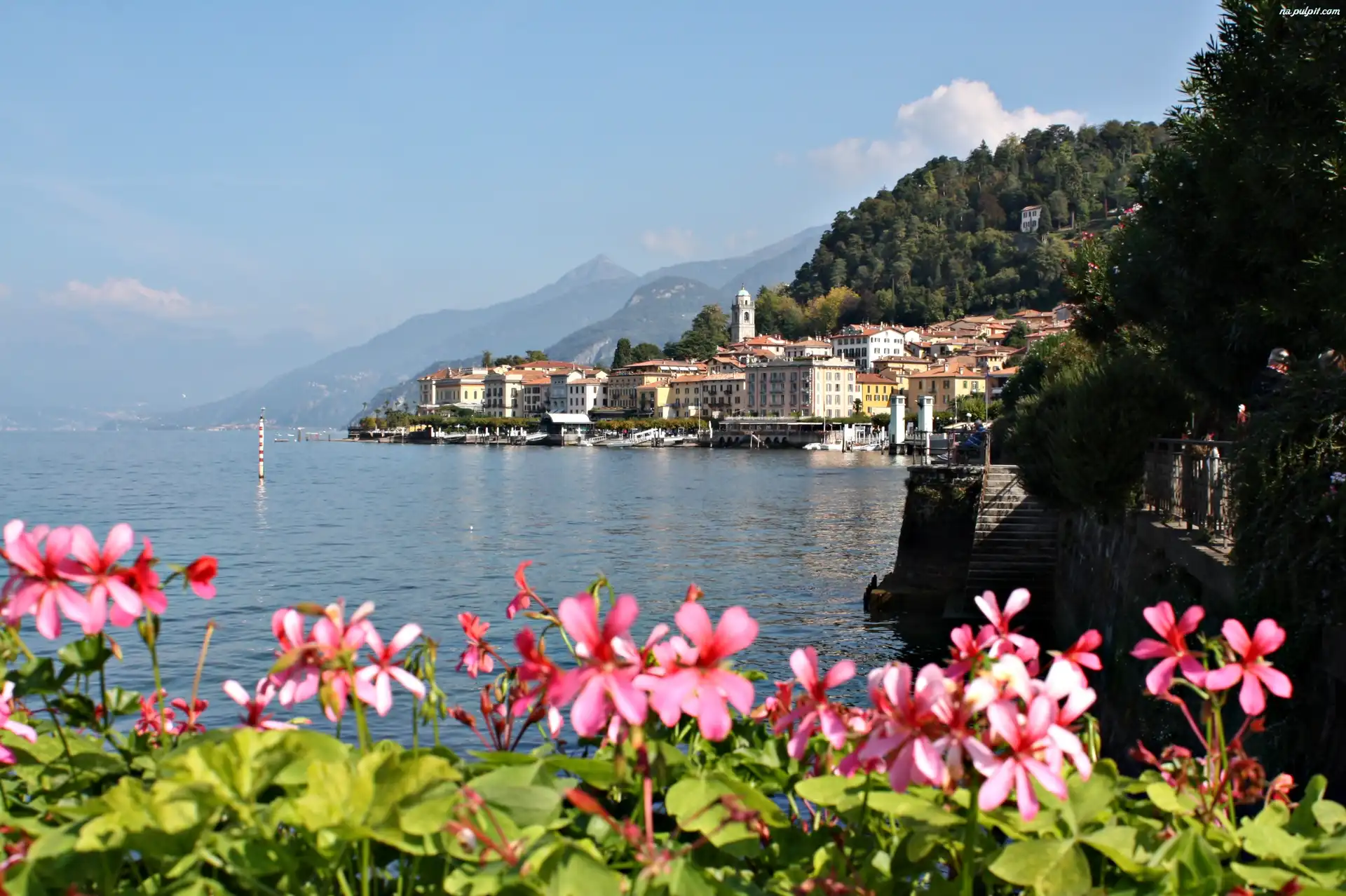 Włochy, Kwiatki, Como, Jezioro, Bellagio Na Pulpit