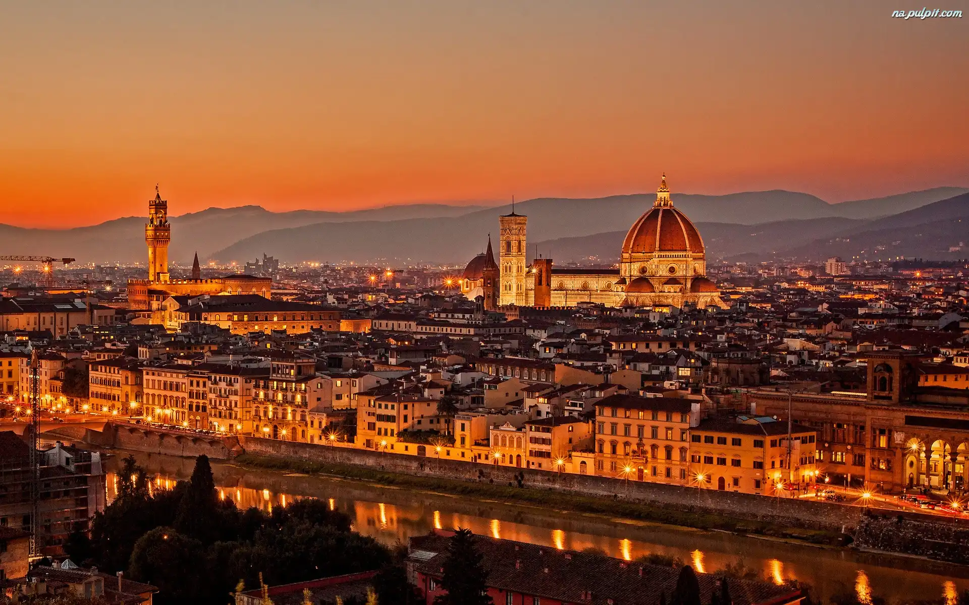 Włochy, Panorama, Florencja, Katedra, Miasta
