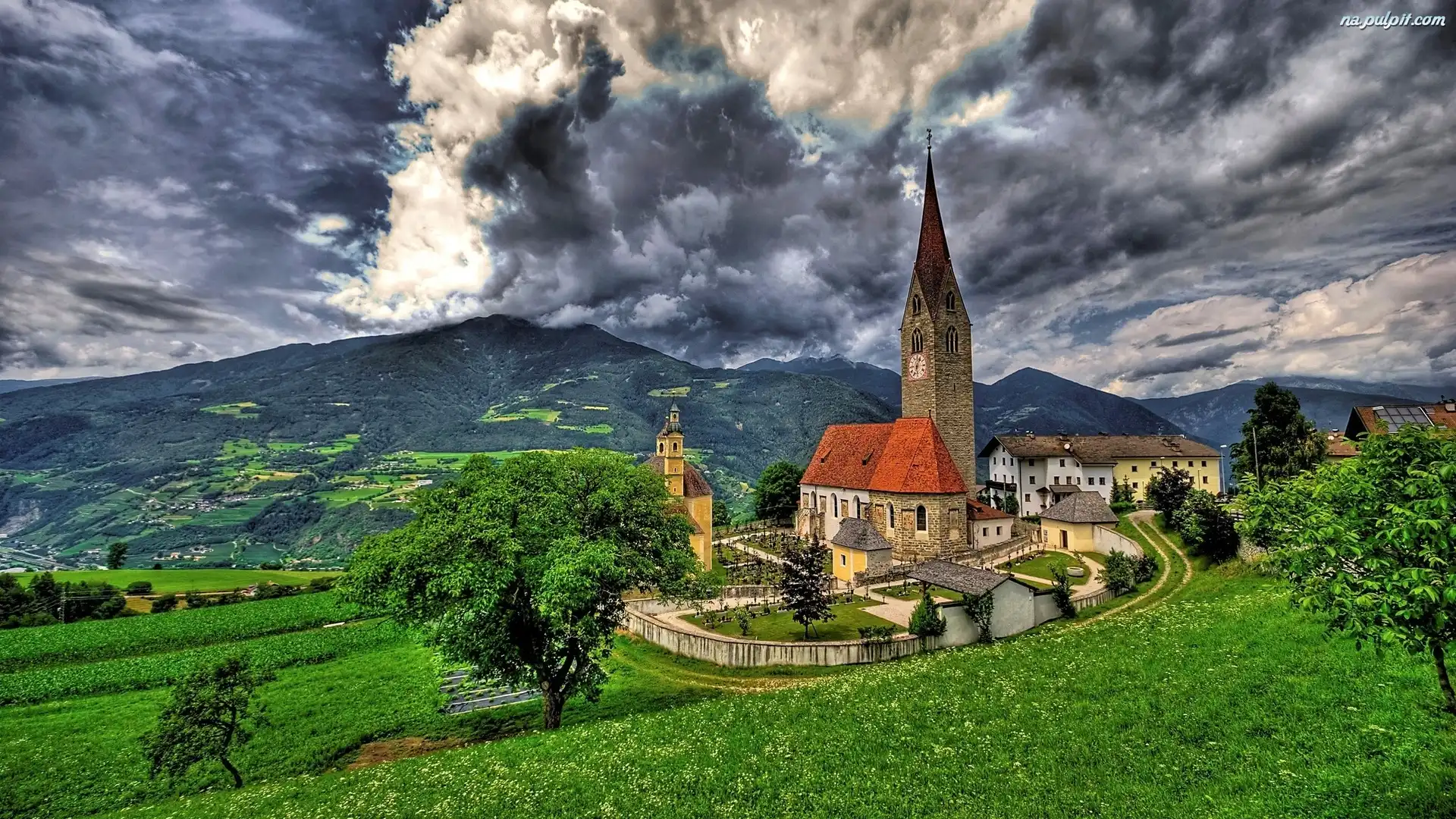 Włochy, Góry, Saint Michael, Kościół, Chmury Na Pulpit