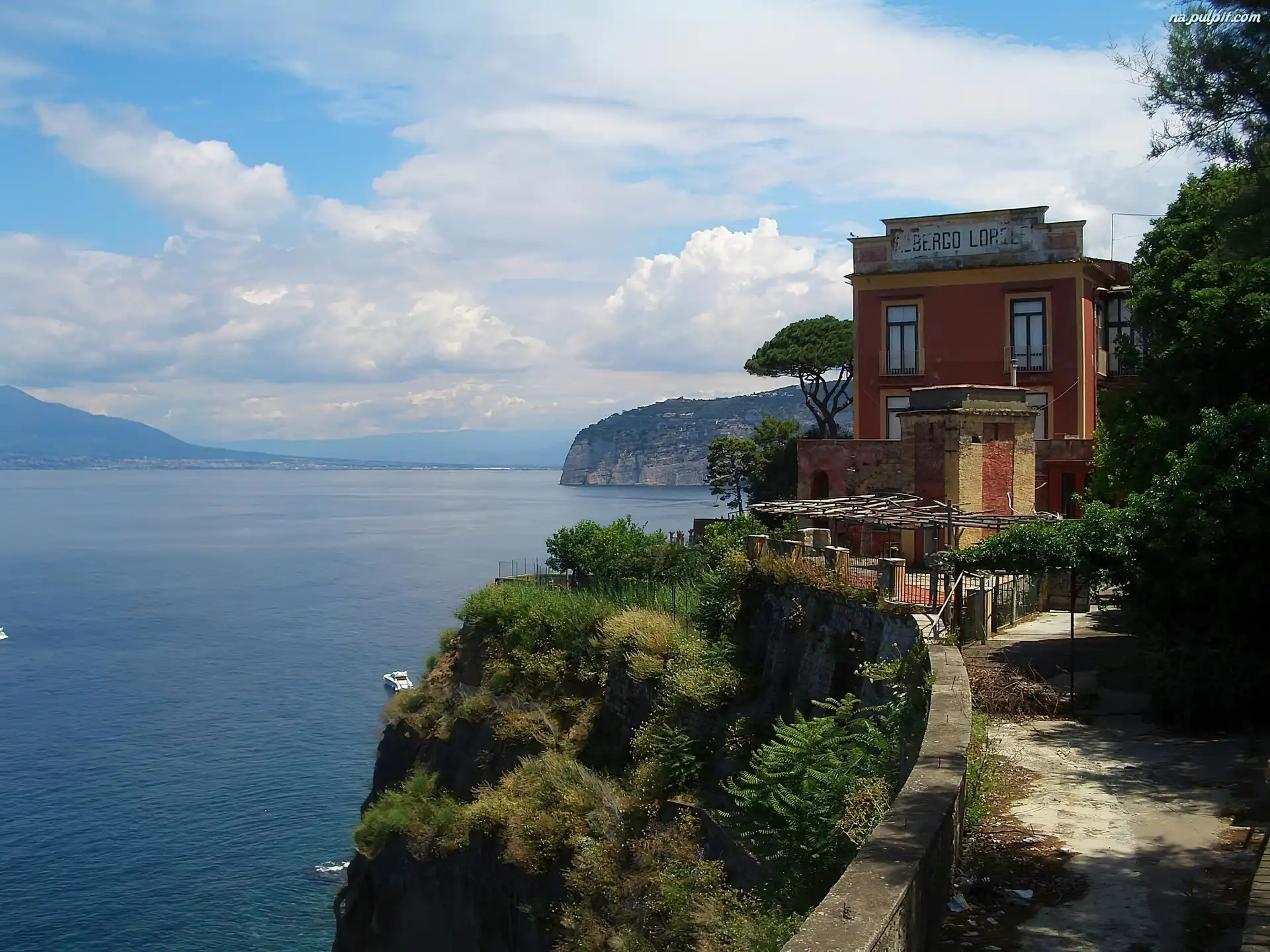 Krzaki, Włochy, Drzewa, Dom, Woda, Sorrento, Murek Na Pulpit