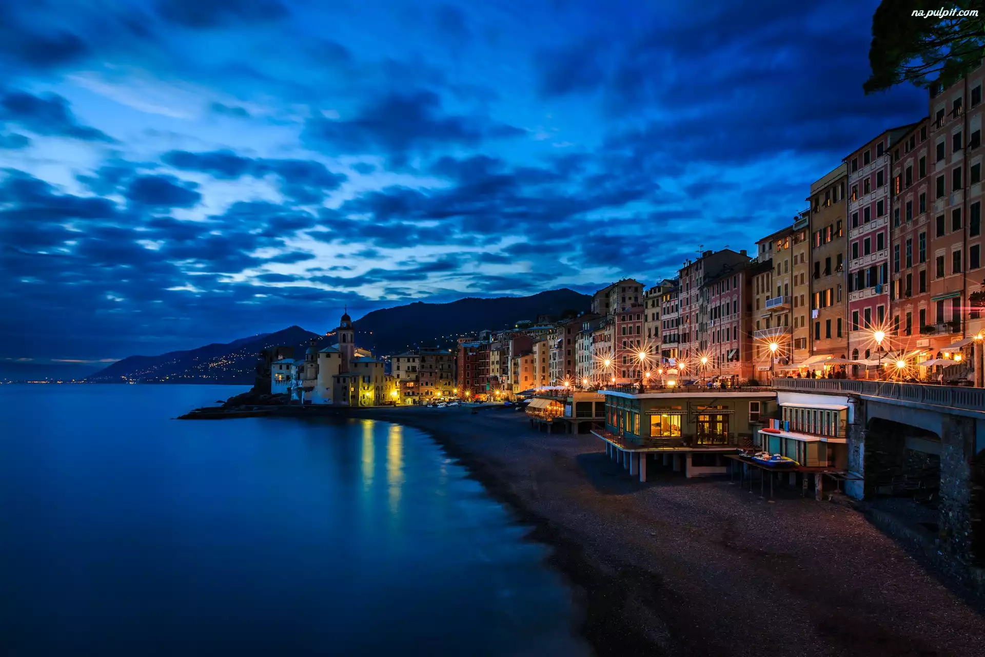 Włochy, Miasto, Plaża, Morze, Camogli Na Pulpit