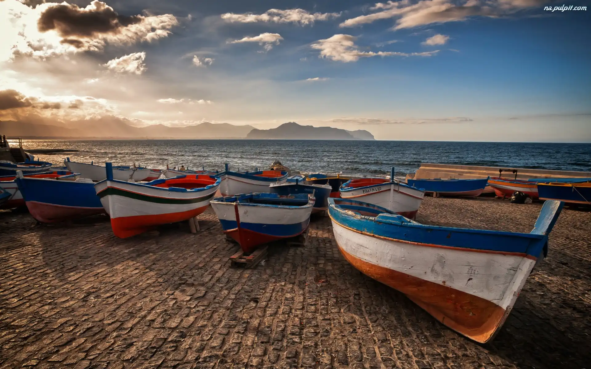 Łodzie, Sycylia, Włochy, Jezioro Na Pulpit