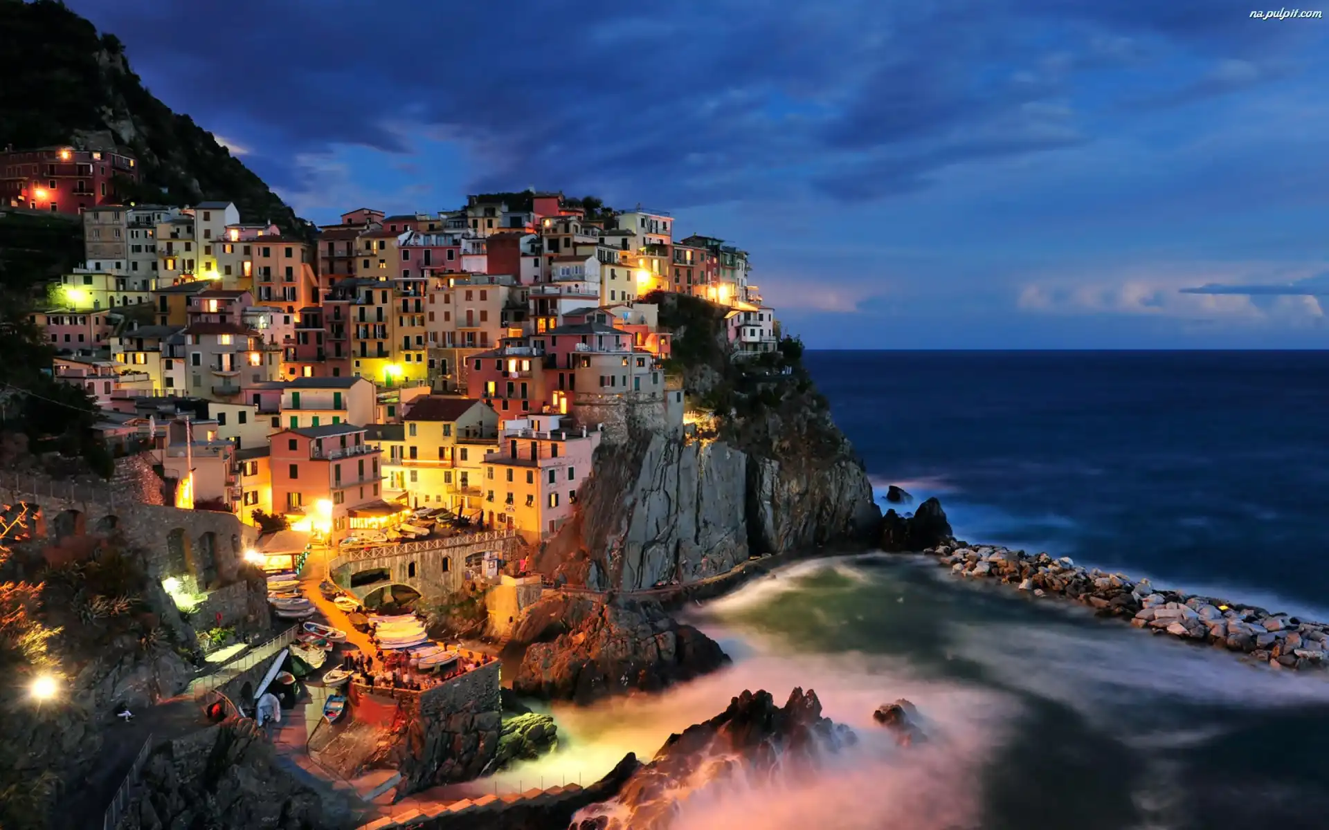 Włochy, Manarola, Wioska, Wybrzeże Na Pulpit