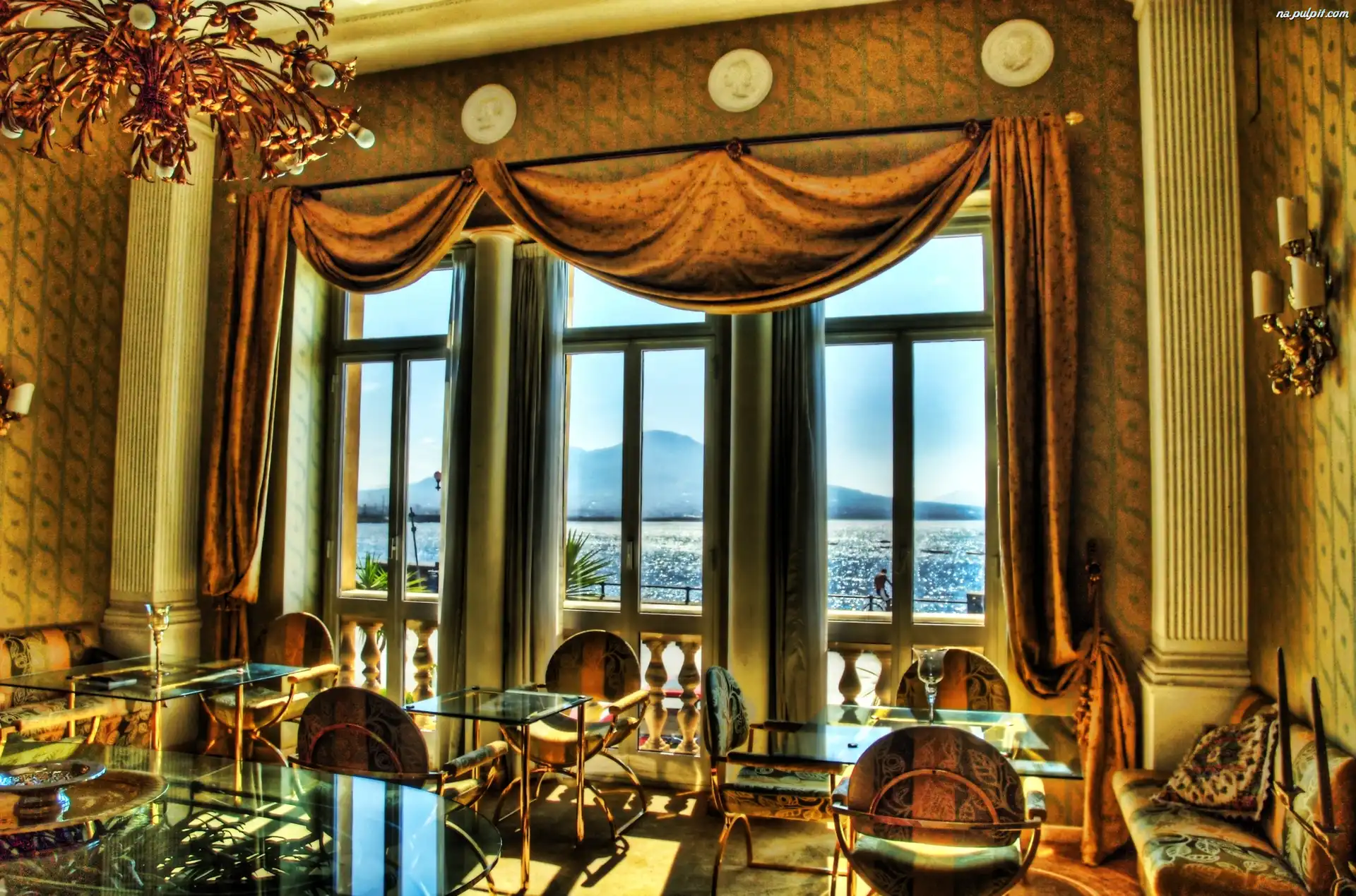 , MGM Grand, Hotelu, Wnętrze, Las Vegas Portofino, Italia Westminster, Anglia, Miasto Hotel, Sypialnia Góry, Amalfi, Atrani, Włochy, Morze Stoliki, Hotel, Restauracja Chmura, Francja, Zamek Luksusowy, Hotel Drzewko, Hotel, Ławka Mostek, Wenecja, Miasto, Gondola Wenecja, Wodą, Nad, Domy, Włochy