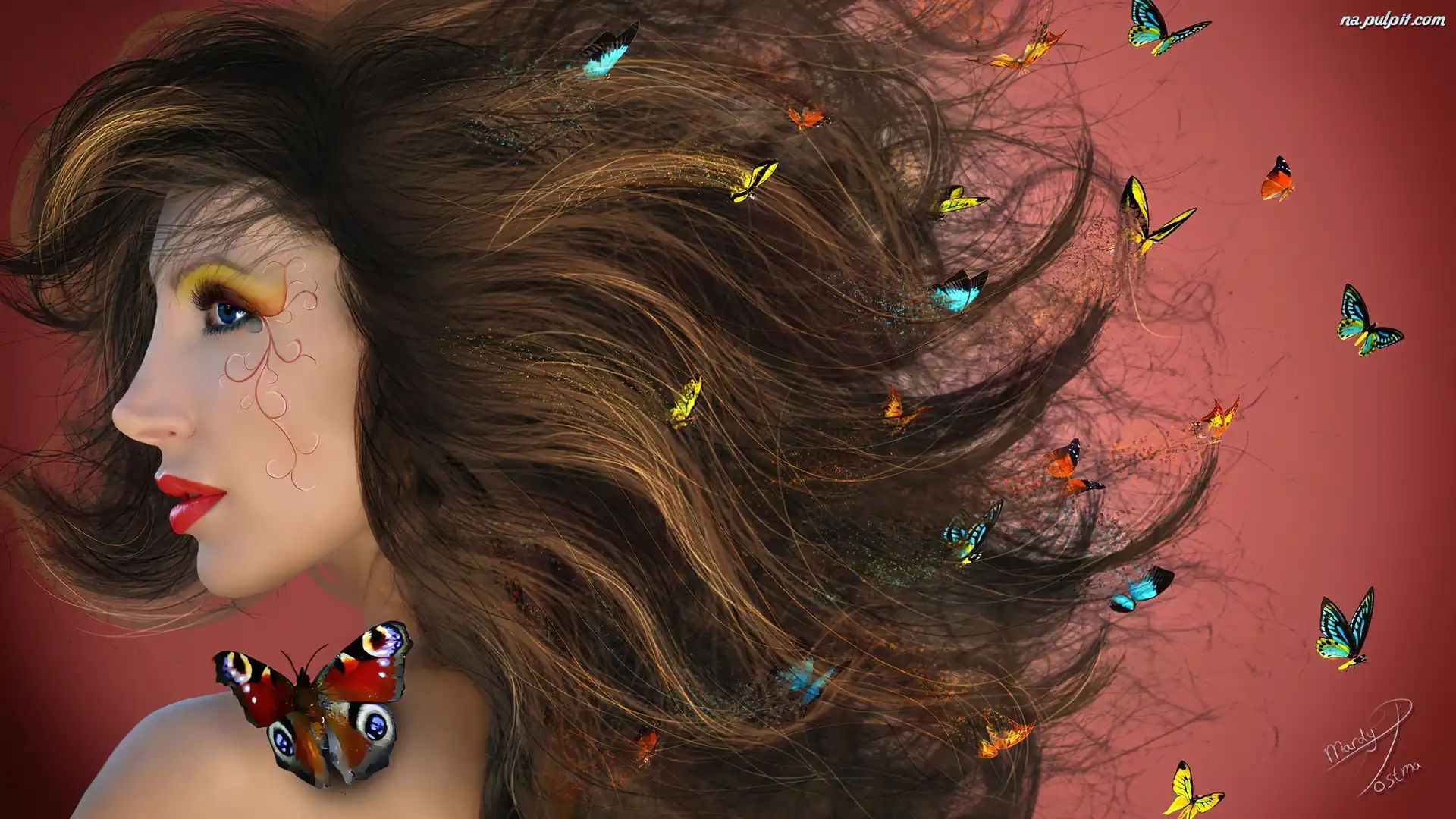 Włosach, Motyle, Dziewczyna, We Na Pulpit